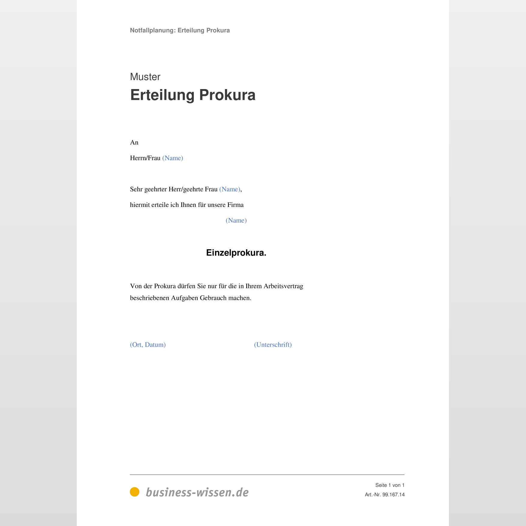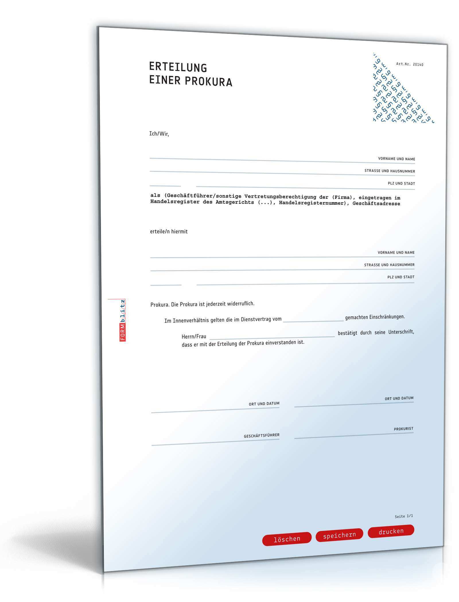 Die prokura ist eine umfassende handlungsvollmacht für die besondere gesetzliche vorschriften gelten. Prokura erteilen vorteilspaket gmbh vertragsmuster erhalten sie diese und weitere vorlagen für nur 38 86 mit unserem vorteilspaket gmbh vertragsmuster. Stillschweigend kann eine prokura nicht erteilt werden. Wer ist dazu berechtigt.
