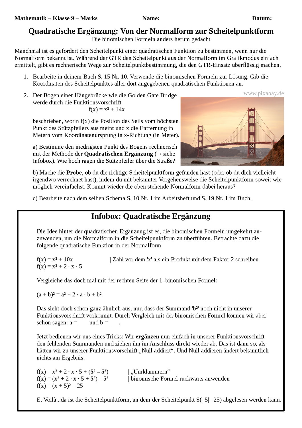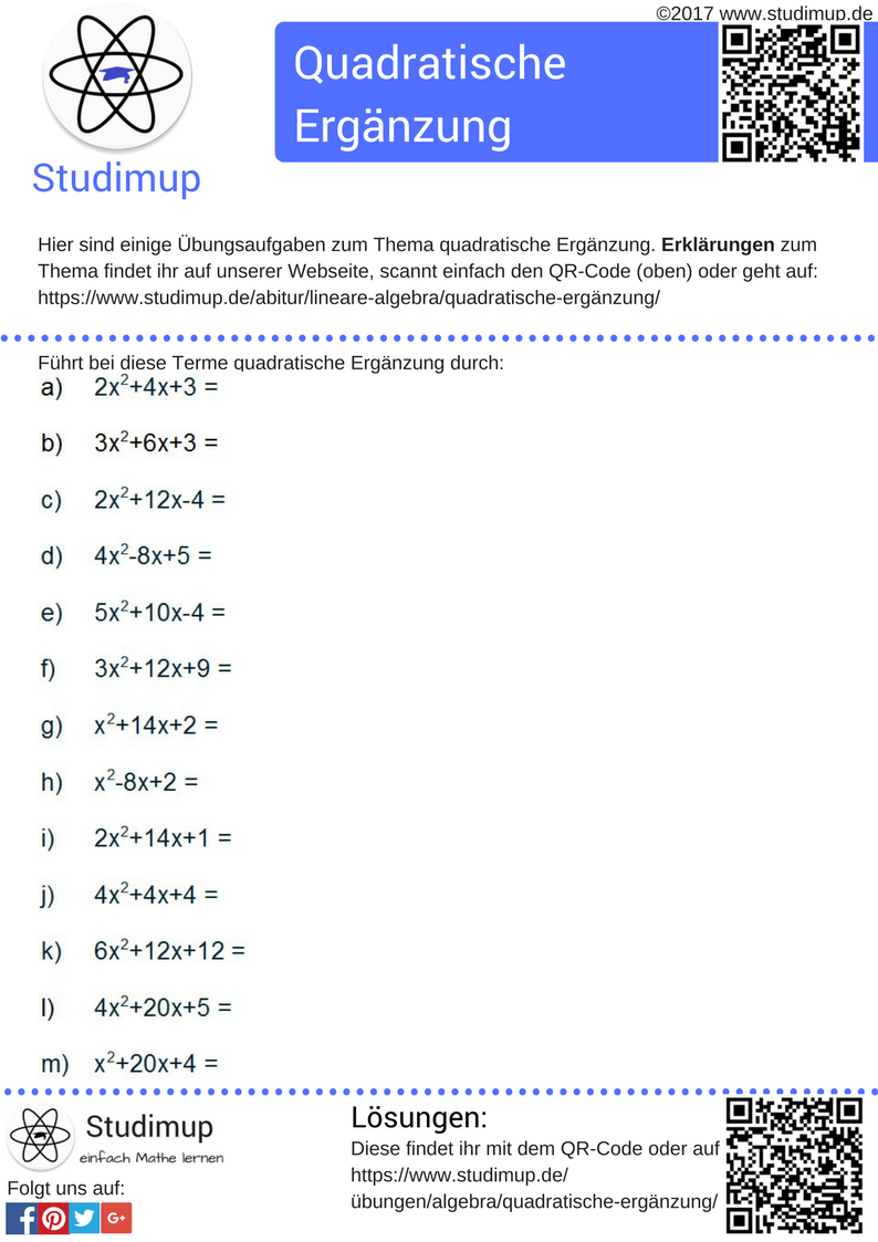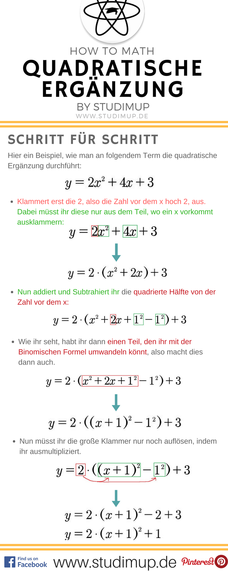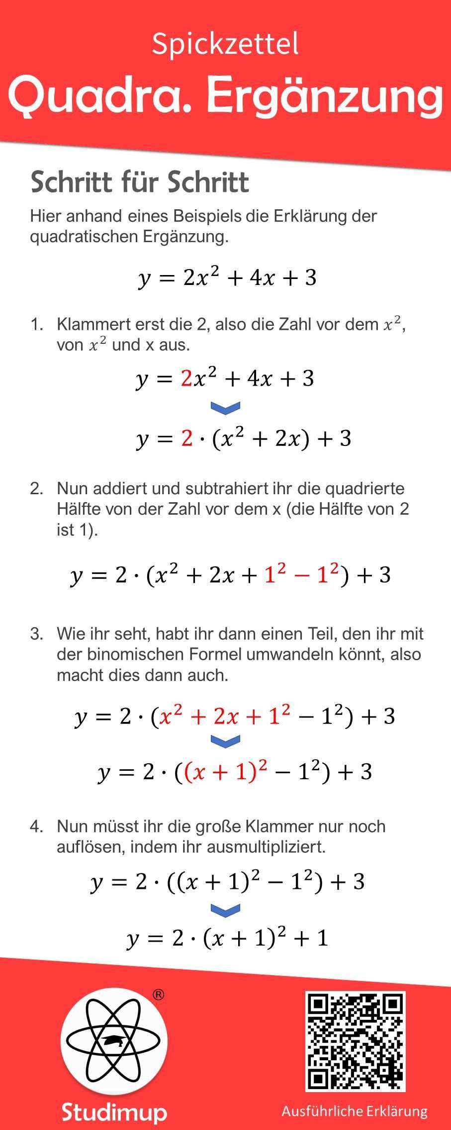 Dazu formt man den ursprünglichen term so um dass man die 1. Einfach erklärt mit videos übungen. Die quadratische ergänzung ist eine methode um quadratische gleichungen zu lösen oder um die scheitelpunktform quadratischer funktionen herzustellen. X 0 83.