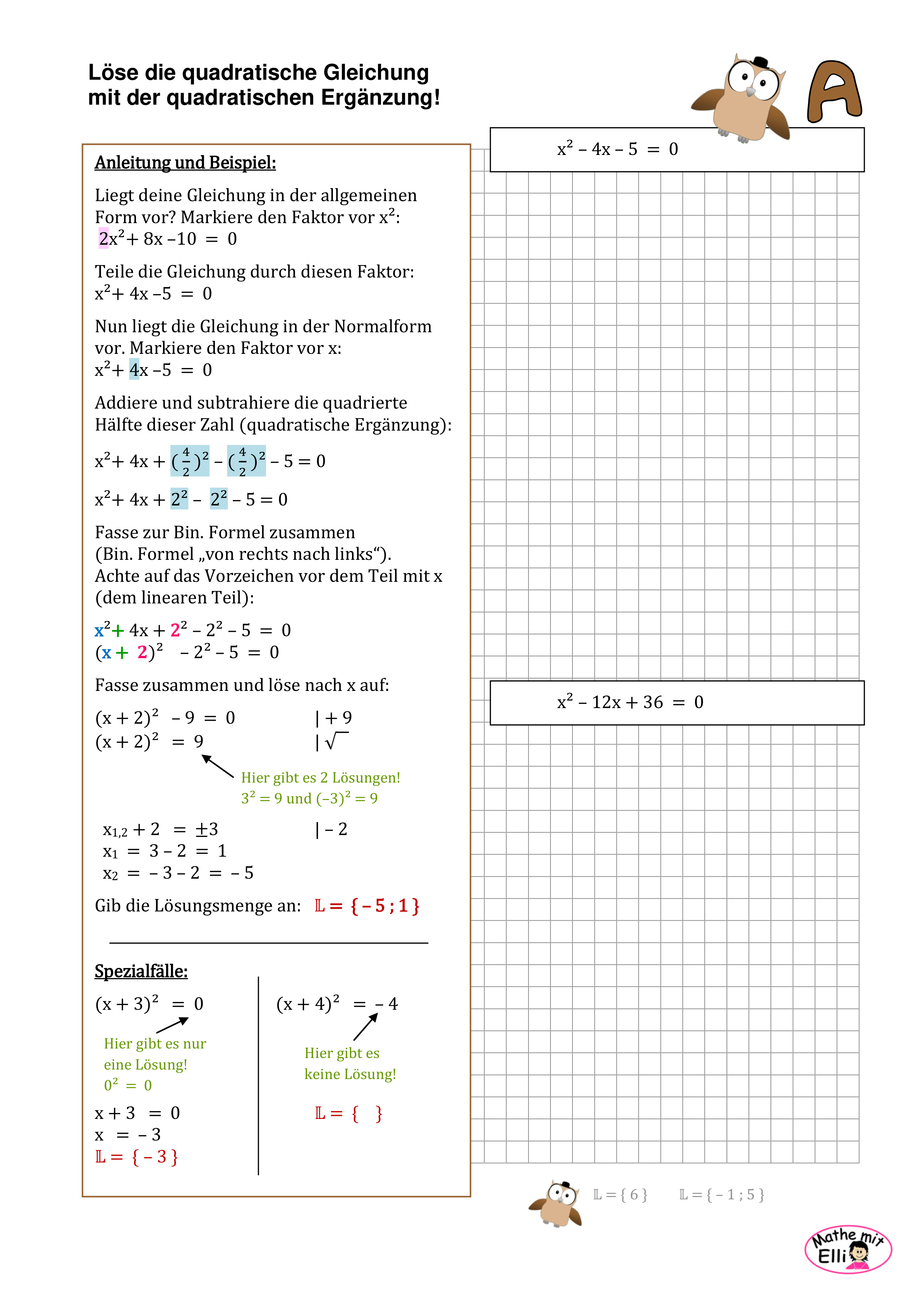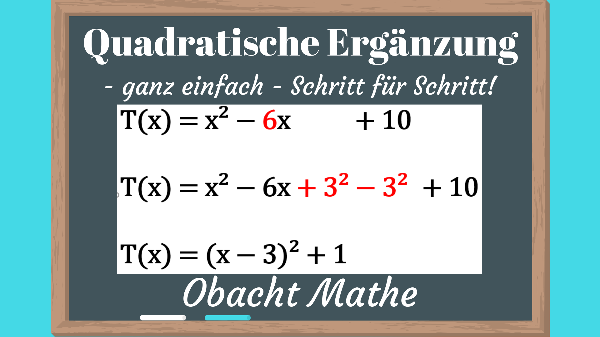 Mit der mitternachtsformel möglich später wirst du noch sehen dass die mitternachtsformel nur eine allgemeine anwendung der quadratischen ergänzung ist. In diesem zusammenhang wird erklärt wofür man die quadratische ergänzung einsetzt und es werden einige beispiele gezeigt. Die quadratische ergänzung ist in der mathematik ein verfahren zum umformen von termen in denen eine variable quadratisch vorkommt also zum beispiel x 2 oder a 2.