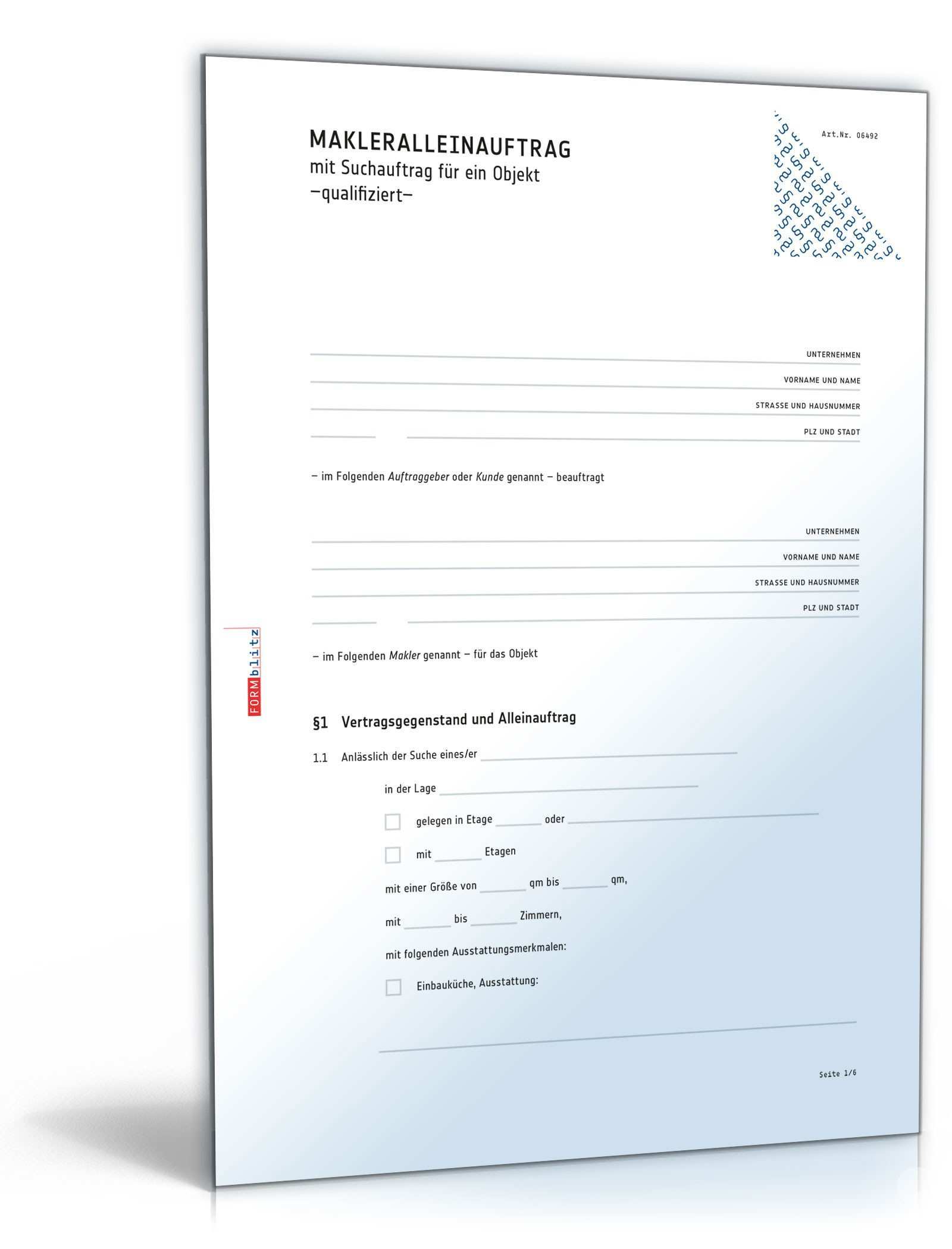 Unverbindliches muster www immoverkauf24 de maklervertrag qualifiierter eiauftrag zudem zahlt der auftraggeber dem auftragnehmer nach abschluss des notariellen kaufvertrags eine maklerprovision in höhe von des kaufpreises inkl. Qualifizierter makleralleinauftrag muster kostenlos. Dies wurde getan um. Ein makleralleinauftrag ist im deutschen maklerrecht ein vertrag der eine ausschließliche vertragsbeziehung zwischen makler und auftraggeber vorsieht dies bedeutet dass der auftraggeber meist immobilienverkäufer keinen weiteren immobilienmakler parallel mit der vermarktung der immobilie beauftragen darf.