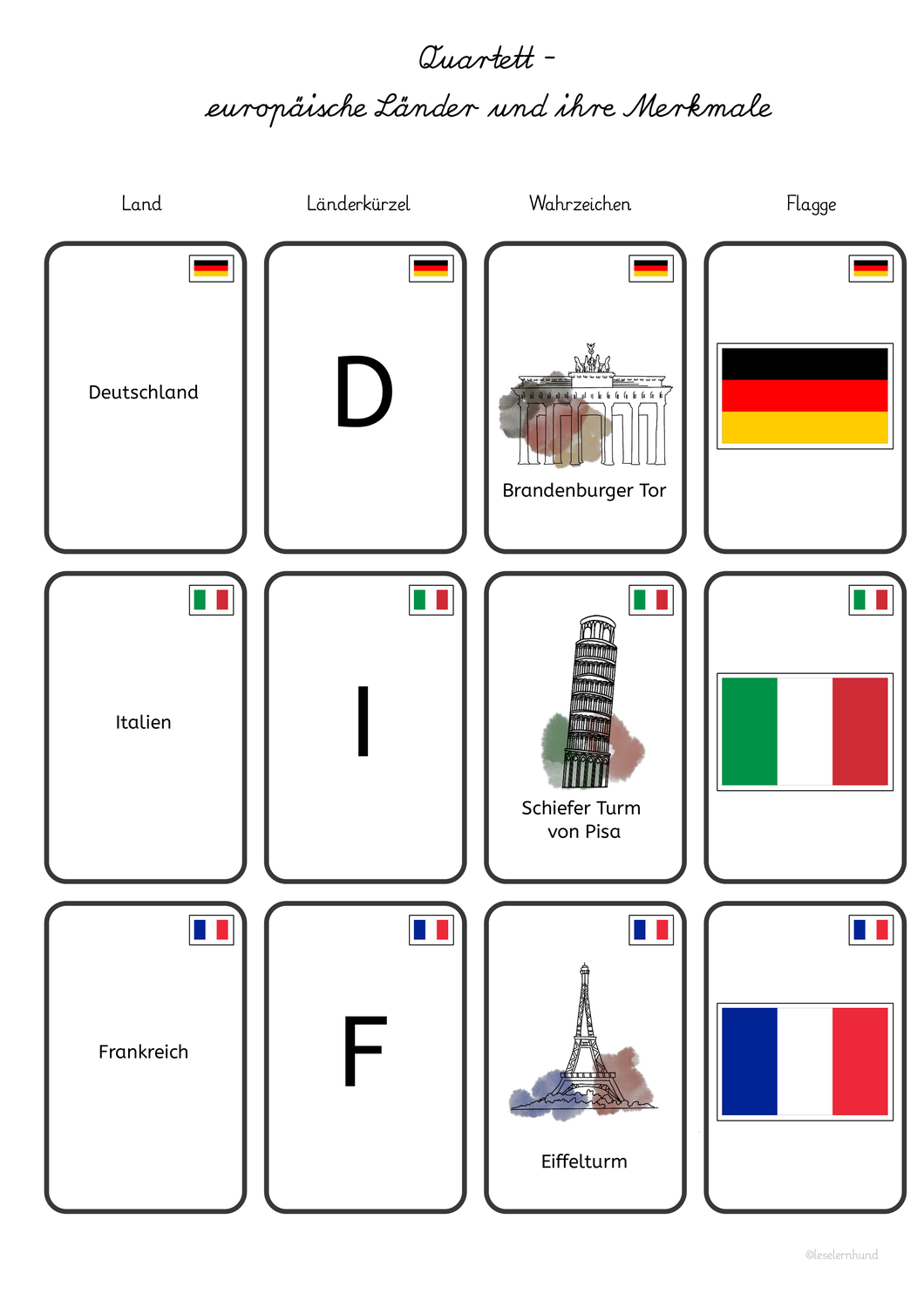 Paare suchen türkis 20 karten pro seite 4 8cm x 4 8cm monika wegerer doc 9 2005. In die ecke oben links den namen des quartetts für die jeweils vier zusammengehörigen karten eintragen.