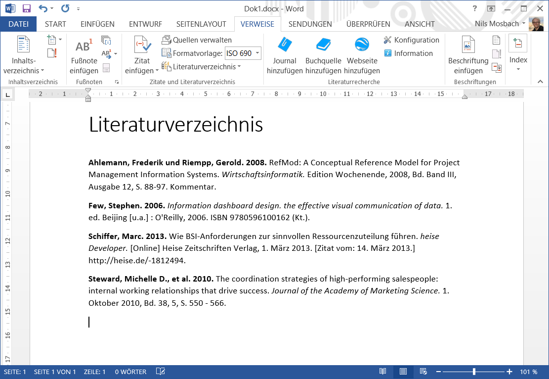 Erstellen von einem literaturverzeichnis in word.