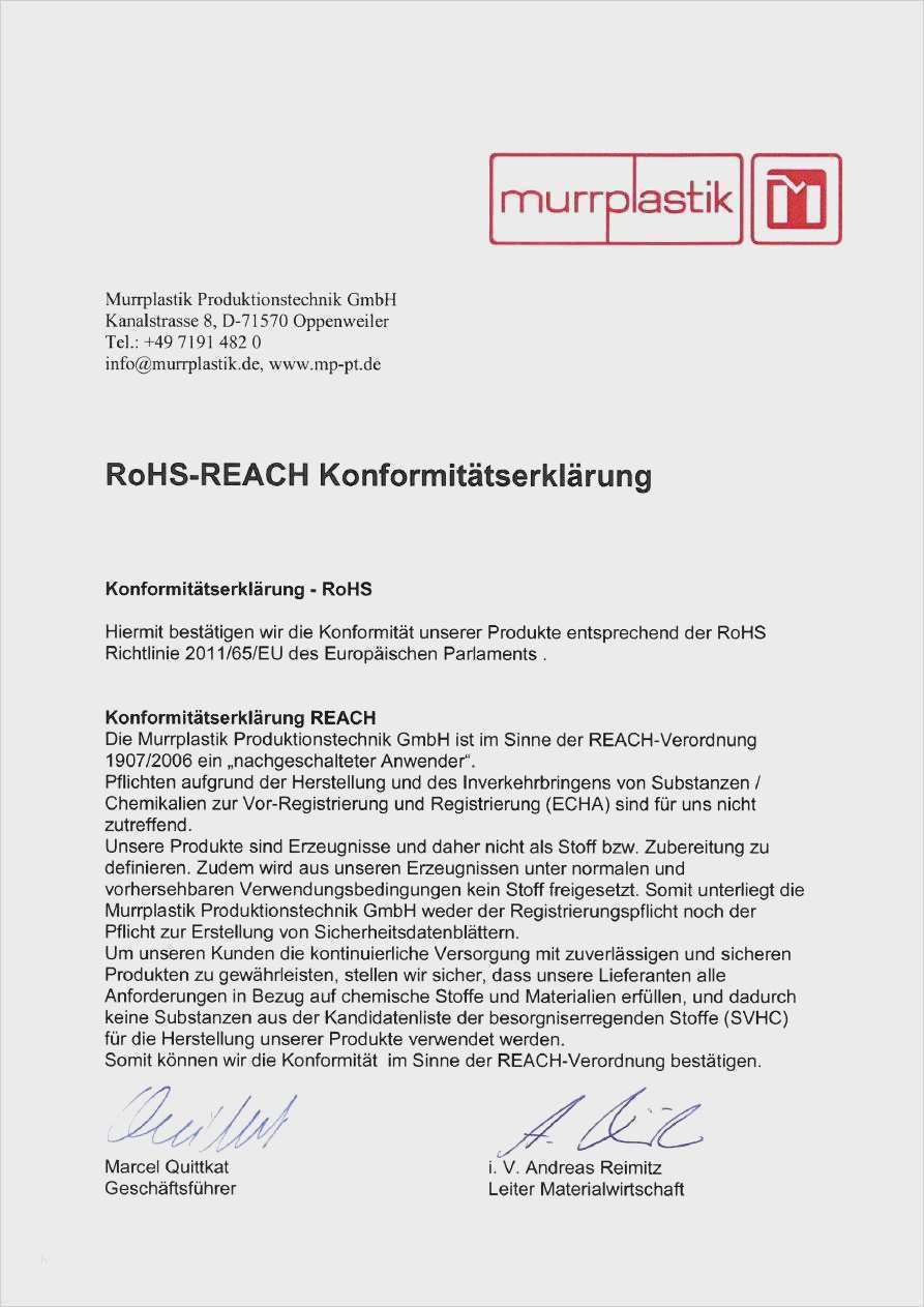 Muster reach erklärung der musterunternehmen musterstraße postleitzahl ort sehr geehrter kunde hiermit bestätigen wir dass in den folgenden von uns gelieferten produkten keine svhc kandidaten stand kandidatenliste vom tt mm jjjj nach art. Beispiele muster checklisten und vorlagen zur konformitätserklärung nach maschinenrichtlinie als pdf und doc format. 49 711 4489 235 e mail compliance novotechnik nospam de. Reach konformitätserklärung alku aluminium reach konformitätserklärung wir beziehen uns dabei auf verordnung eg nr 1907 2006 genannt reach dem neuen europäischen chemikalienrecht als produzent von aluminiumgussteilen sind wir im sinne von reach nachgeschalteter anwender unsere produkte sind ausschließlich nicht chemische produkte erzeugnisse.