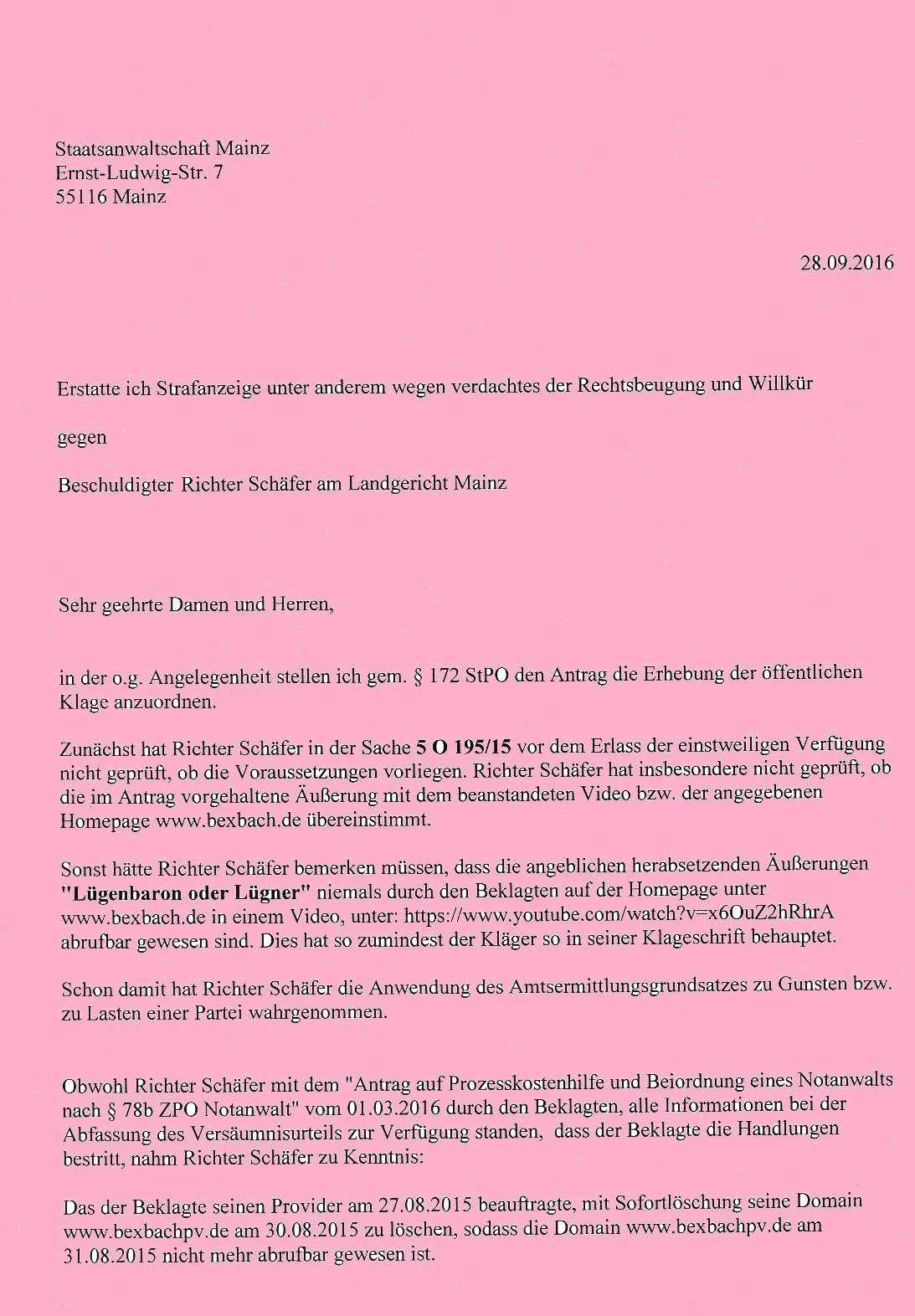 Rechtsbeugung durch richter am landgericht strafanzeige muster. Ich erstatte deshalb strafanzeige gegen michael reinke richter am landgericht berlin wegen rechtsbeugung nach 339 stgb. Somit war dies auch einer der extrem seltenen fälle dass eine rechtsbeugung durch den staatsanwalt erfolgt sein sollte. Und ein solcher muss sich durch gehorsam. Von carsten krumm veröffentlicht am 30 03 2014.