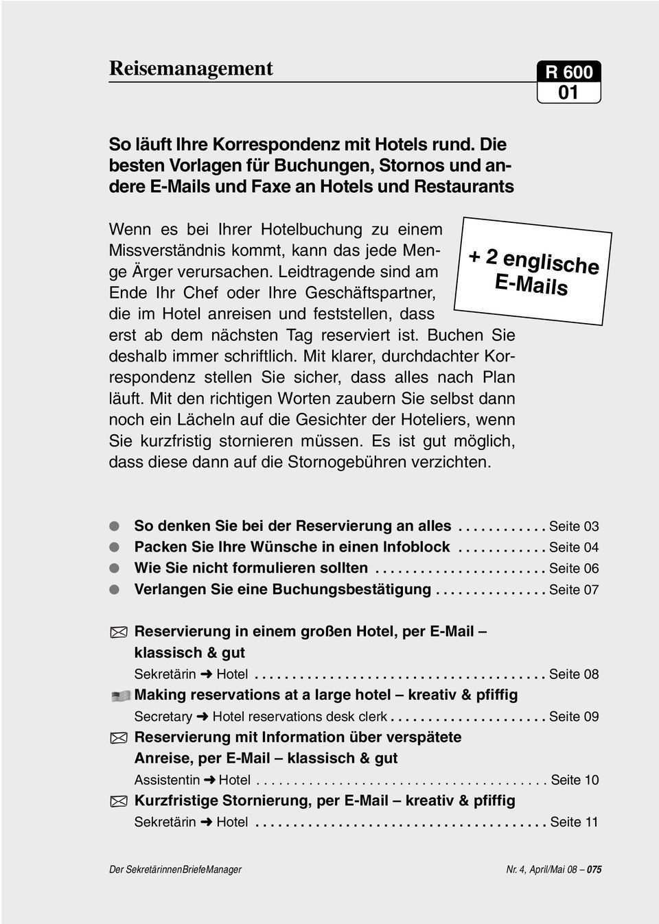 1 abteilung f b 1 1 restaurant 1 2 bar 1 3 bankett 1 4 room service 1 5 spülküche 1 6 küche 2 abteilung rooms division 2 1 rezeption 2 2 etage 2 3 reservierungsbüro 3 abteilung sales 4. Chicago il 60604 312 362 8082 scho depaul edu confirmation dear mrs. Sie finden hier alles wichtige zur betriebsführung von hotels und gaststätten. Enclosed is a cheque of 200 to cover the deposit.