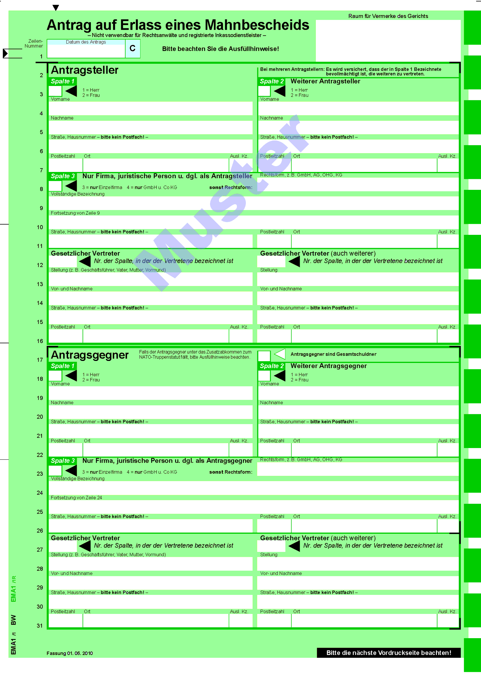 Muster antrag mahnbescheid seite 2. Nun habe ich festgestellt dass der schuldner mir den geforderten betrag zuvor bereits überwiesen hatte wertstellung 5. Die hauptforderung liegt bei ca. Muster selbstschuldnerische bürgschaft.