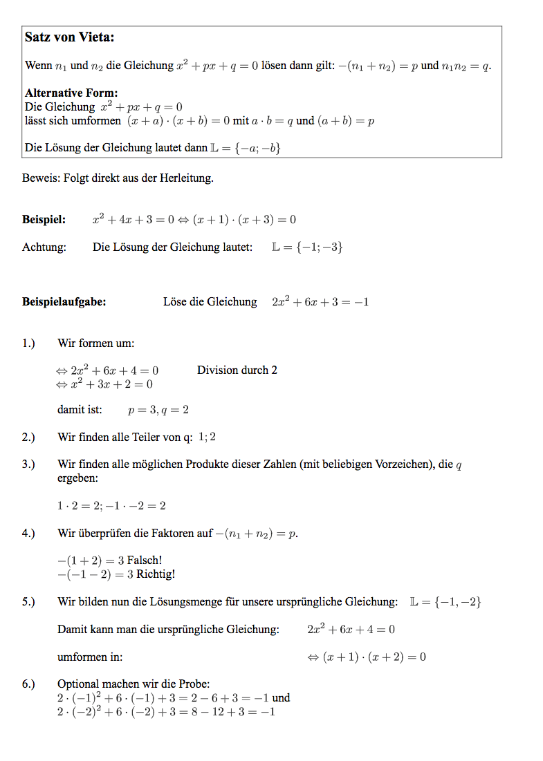 Satz Von Vieta Beispiel