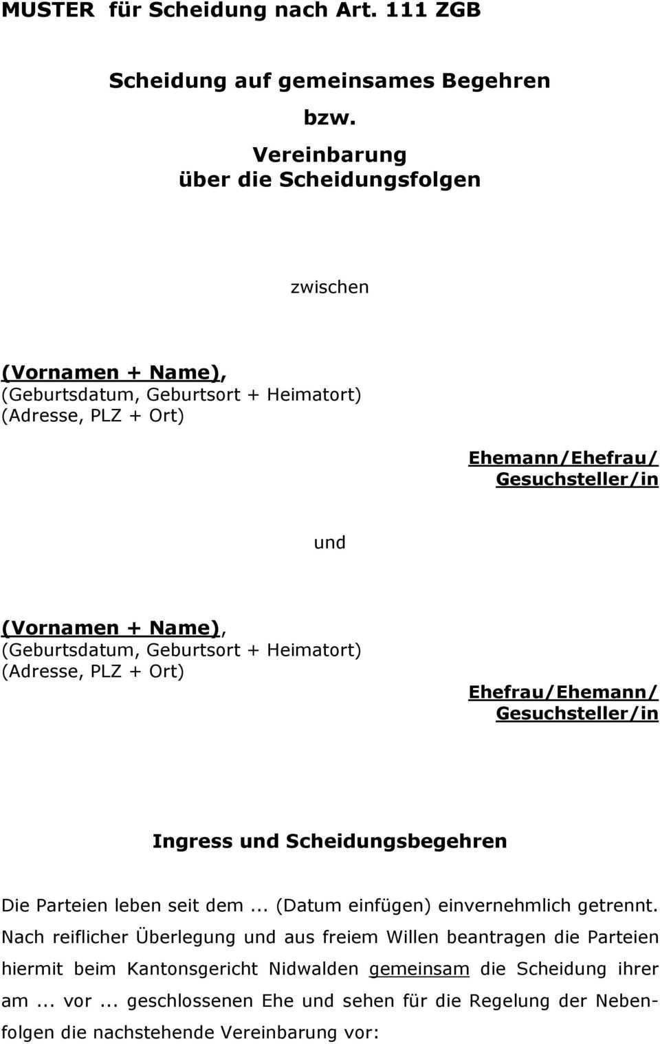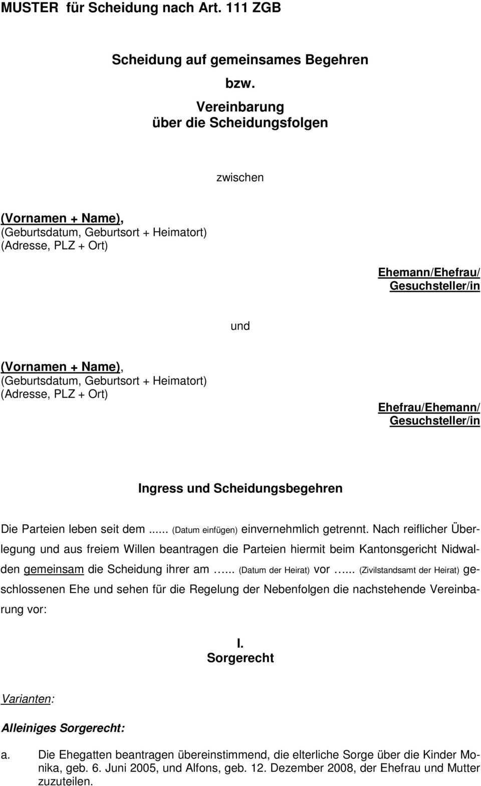 Mit musterverträgen und formularen muss man im internet auch immer vorsichtig sein. Ihr ehescheidungsformular als pdf dokument.
