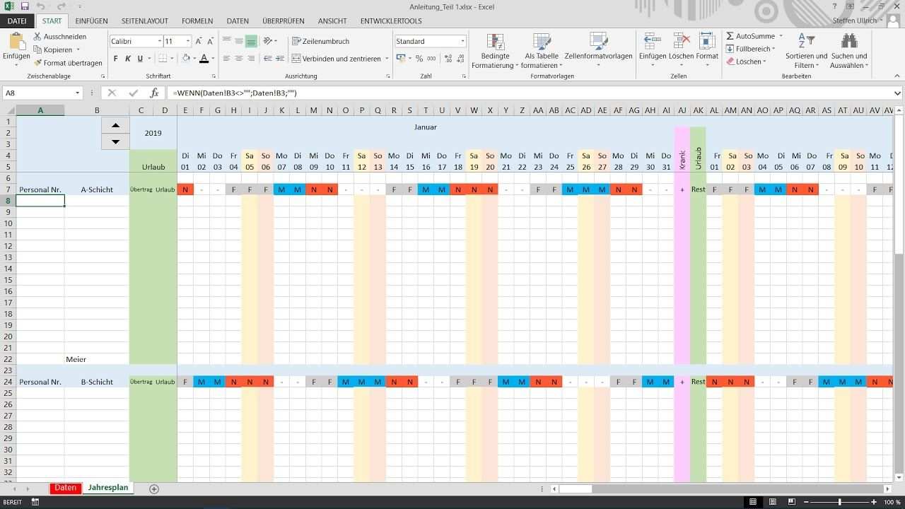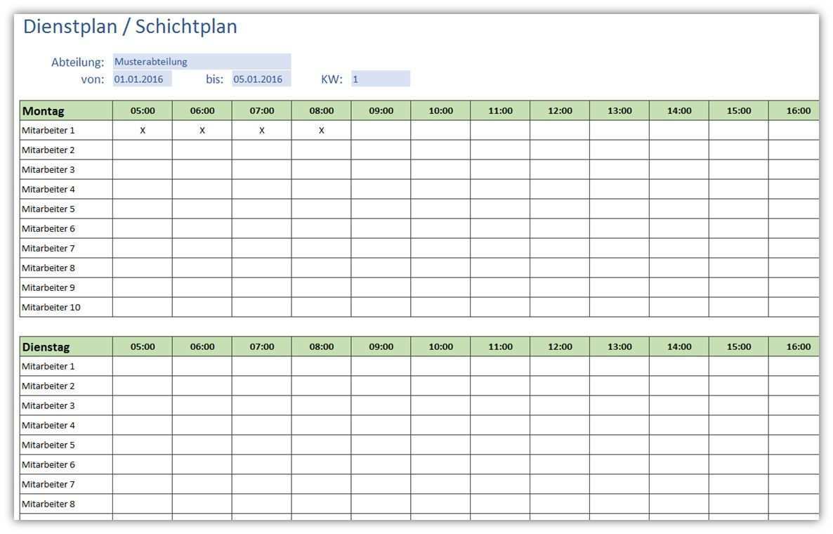Schichtplan Excel Vorlage