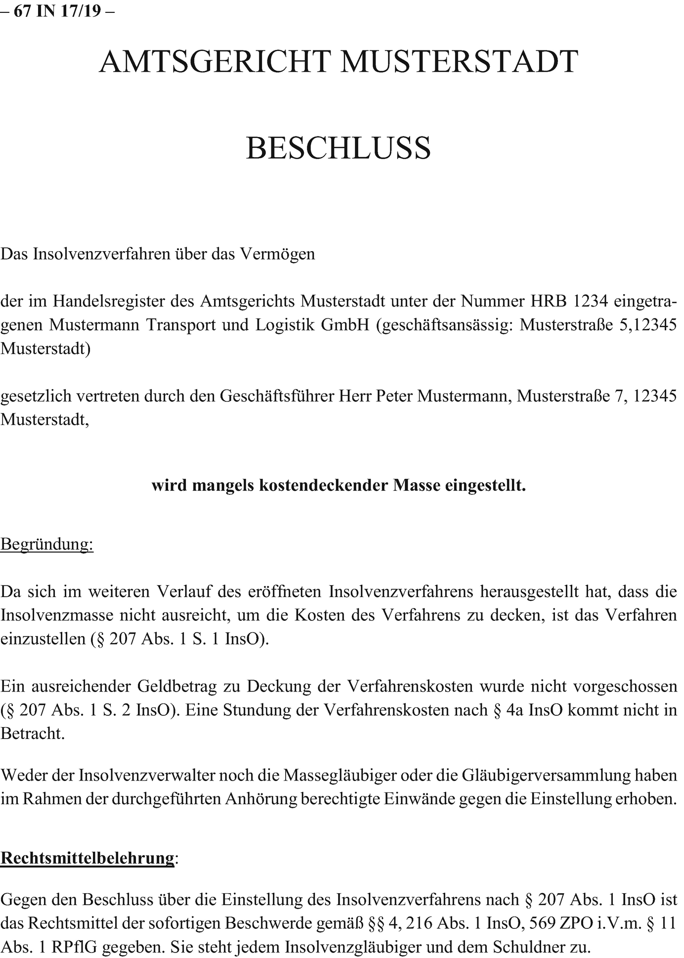 Dieser erfolgt zur abnahme der schlussrechnung sowie zur erhebung von einwendungen gegen das schlussverzeichnis und zur beschlussfassung über die nicht verwertbaren vermögensgegenstände. Muster eines schlussberichts im insolvenzverfahren breuer insolvenzrechts formularbuch 3. Nach 66 abs. Das insolvenzverfahren ist primär dazu da die insolvenzgläubiger zu befriedigen.