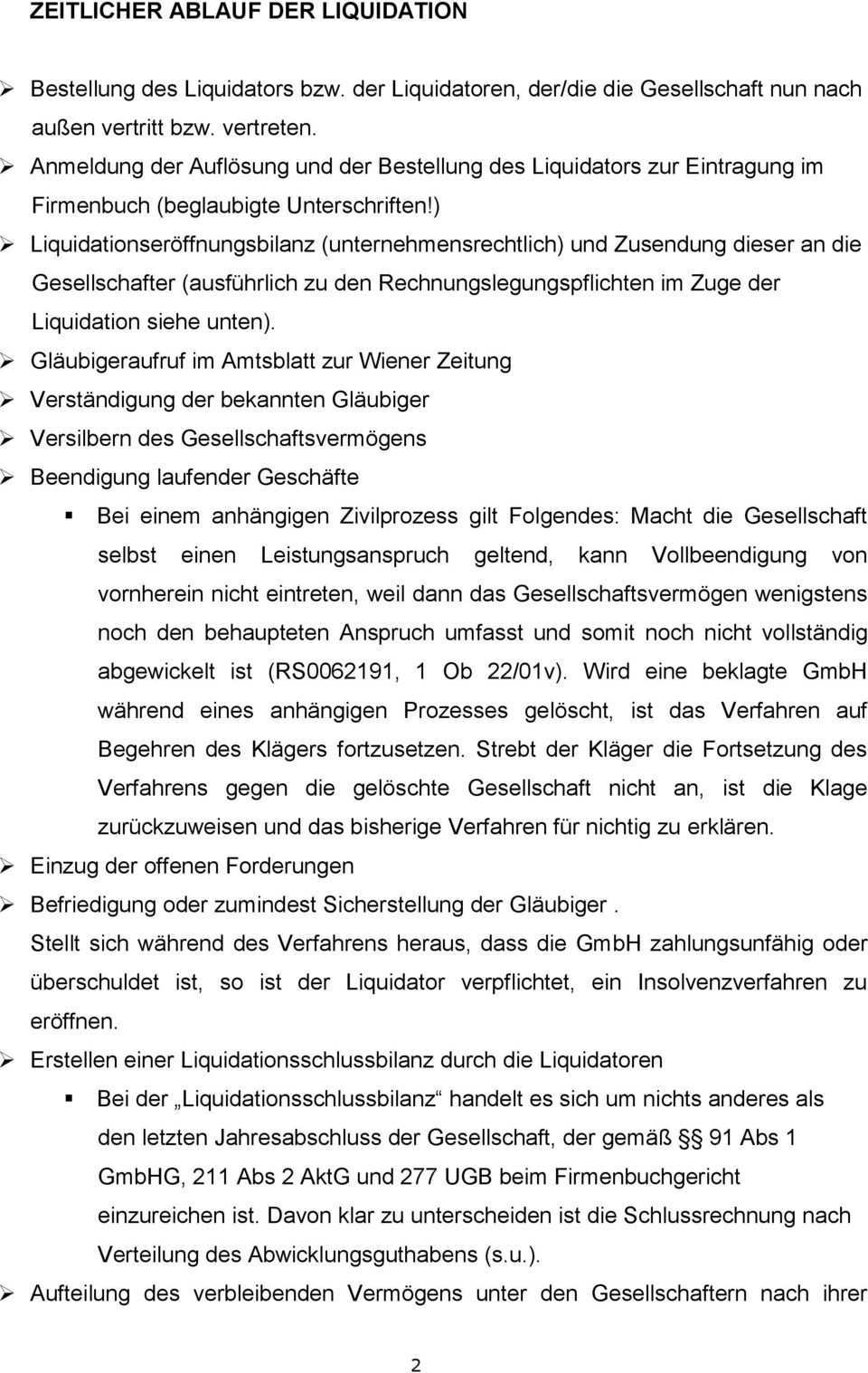 Schlussrechnung liquidation muster. Schlussrechnung liquidation gmbh muster. Auflösung liquidation und beendigung einer gmbh seite 5 von 6 toren wie bereits angesprochen eine liquidations schlussbilanz erstellen. Bezeichnung menge einzel gesamt 1 lieferung und montage einer anlage 99 900 00 ablieferung und abnahme. Nach der vermögensverteilung haben die liquidatoren der gesellschafterversammlung eine schlussrechnung vorzu legen die anhand der schlussrechnung über die beendigung der liquidation und die entlastung der liquidatoren entscheidet.