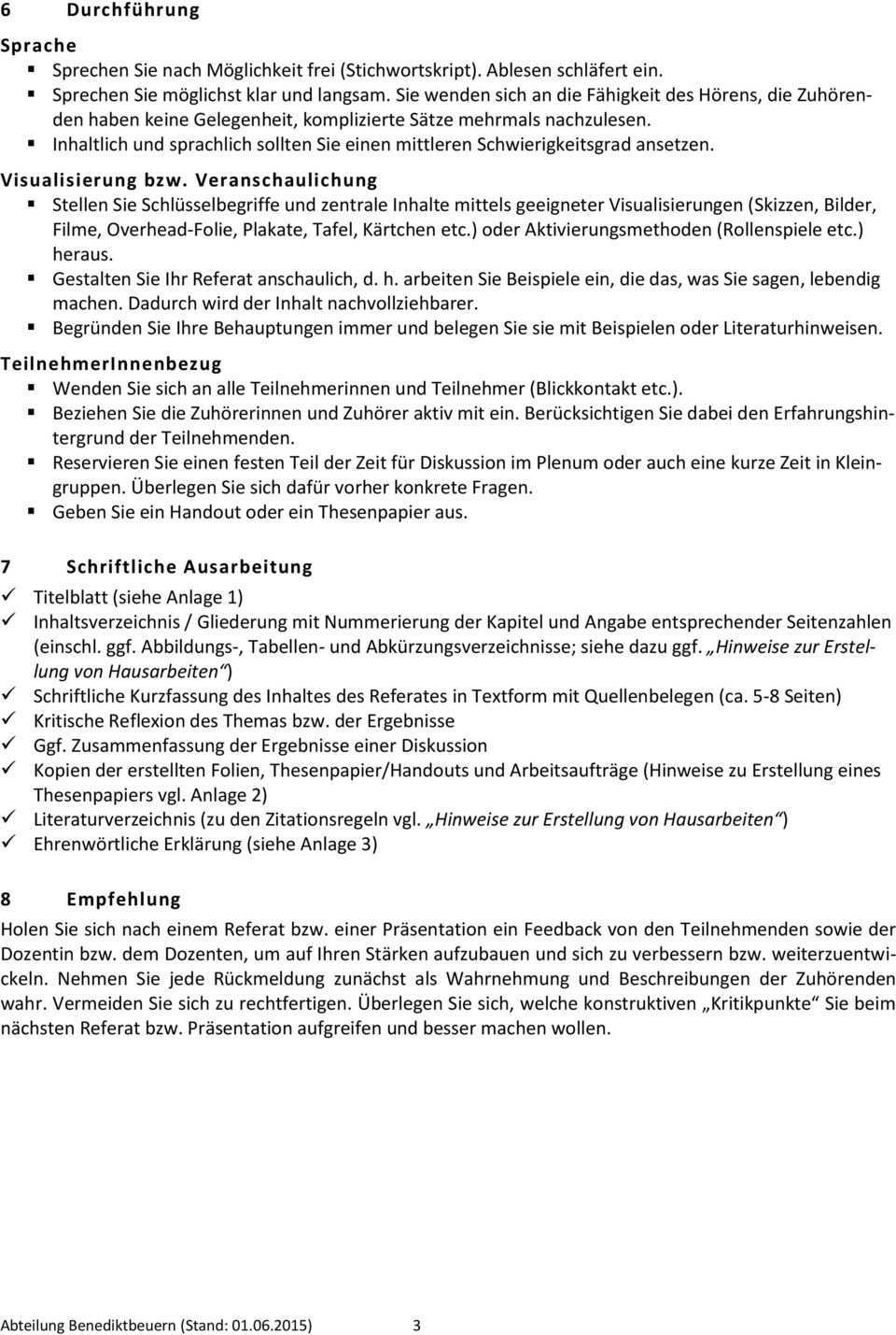 14f direkt unter dem entsprechenden textteil oder bild. Anleitung gliederung und tips zum verfassen von schriftlichen referaten. Jedes referat ist immer vom aufbau her dreigeteilt. Die quellenangabe erfolgt in klammer und kurzform z b.
