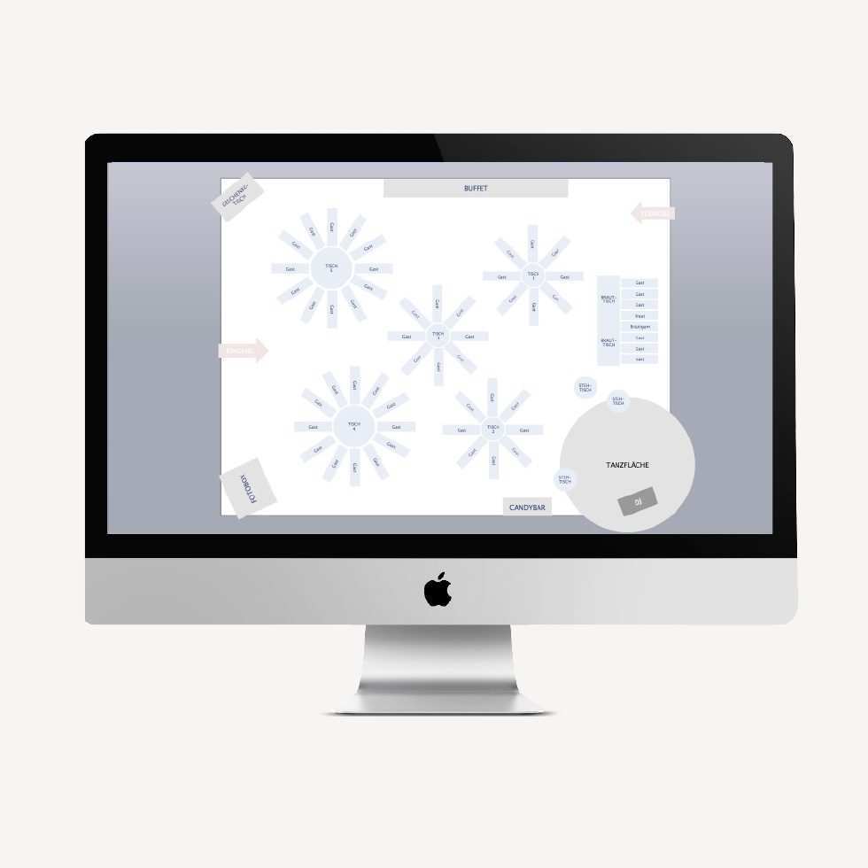Jeder platz hat ein feld in den der name eingetragen werden kann oder ein post it aufgeklebt werden kann.