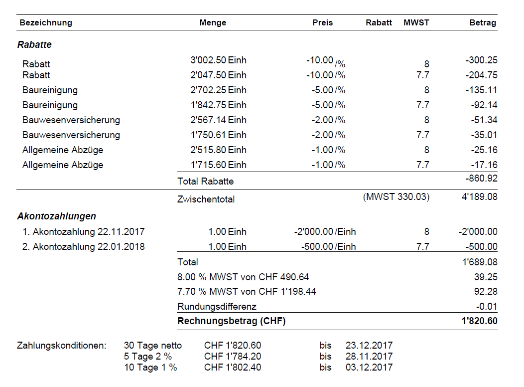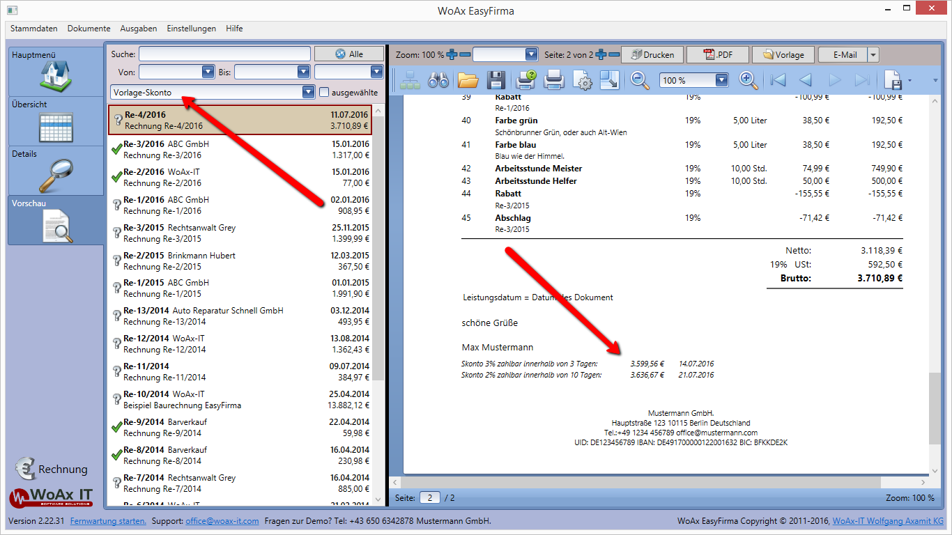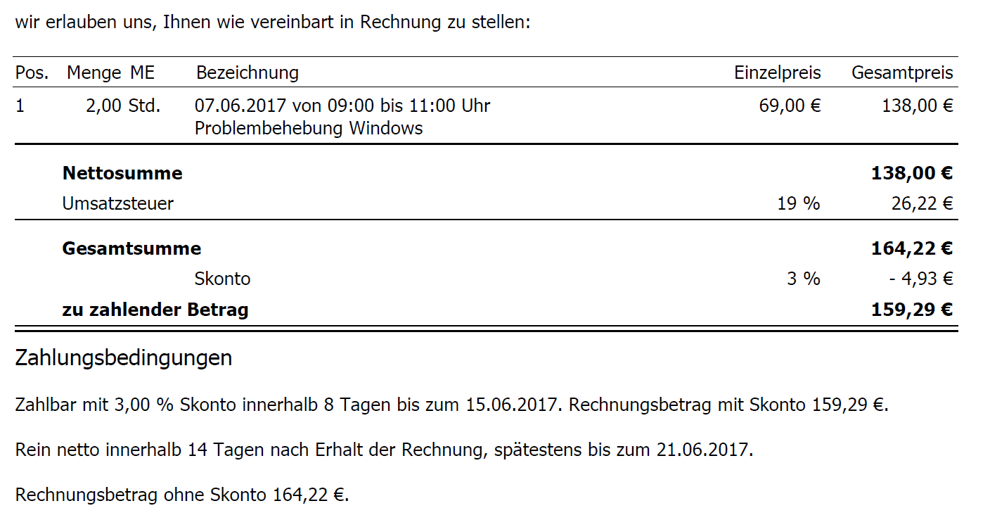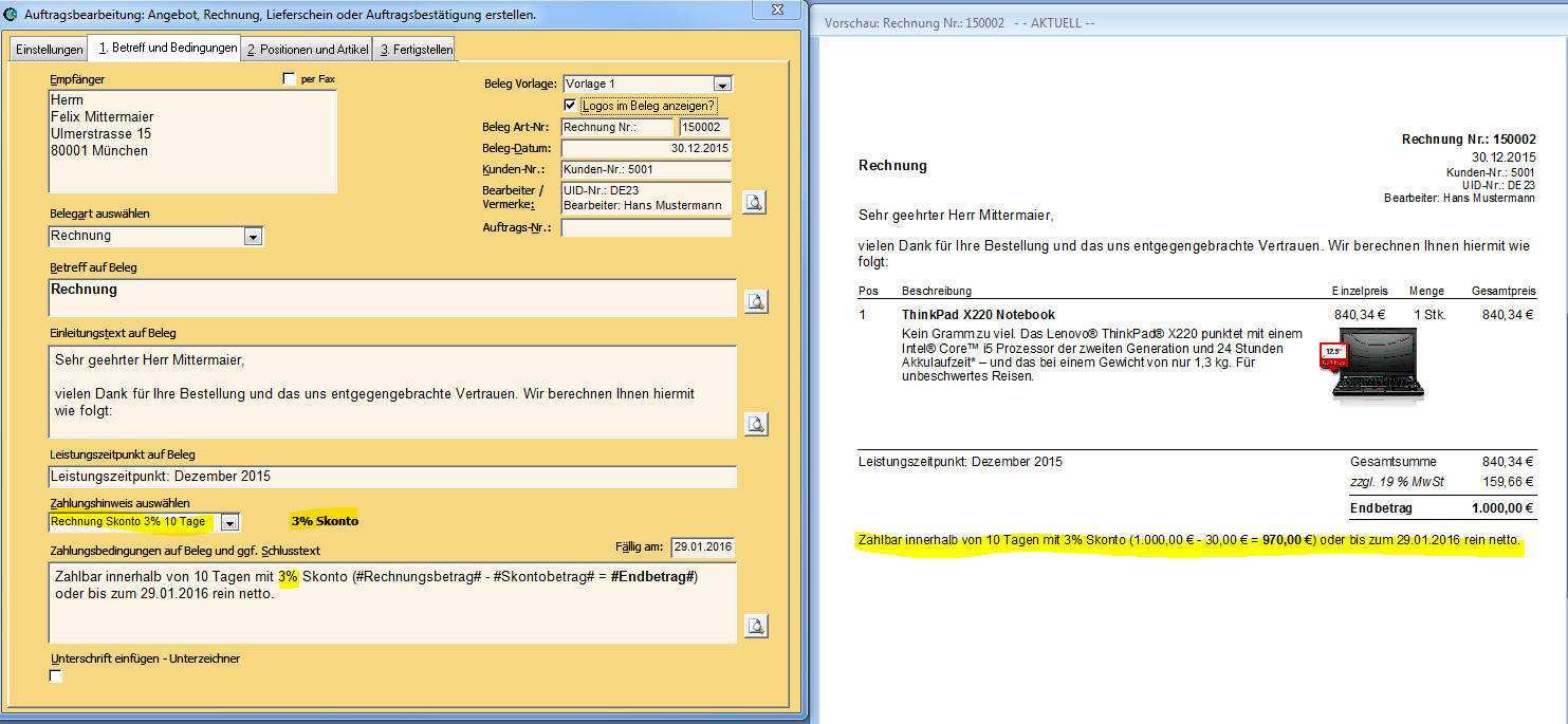 Skonto rechnung beispiel. Willst du den überblick über deine rechnungen mit und ohne skonto behalten. Du zahlst als kunde innerhalb der skontofrist und erhältst deshalb 3 skonto von einem rechnungsbetrag ihv 2 300 euro. Sparte bank und versicherung. Praxisbeispiel zahlungskonditionen einer rechnung.