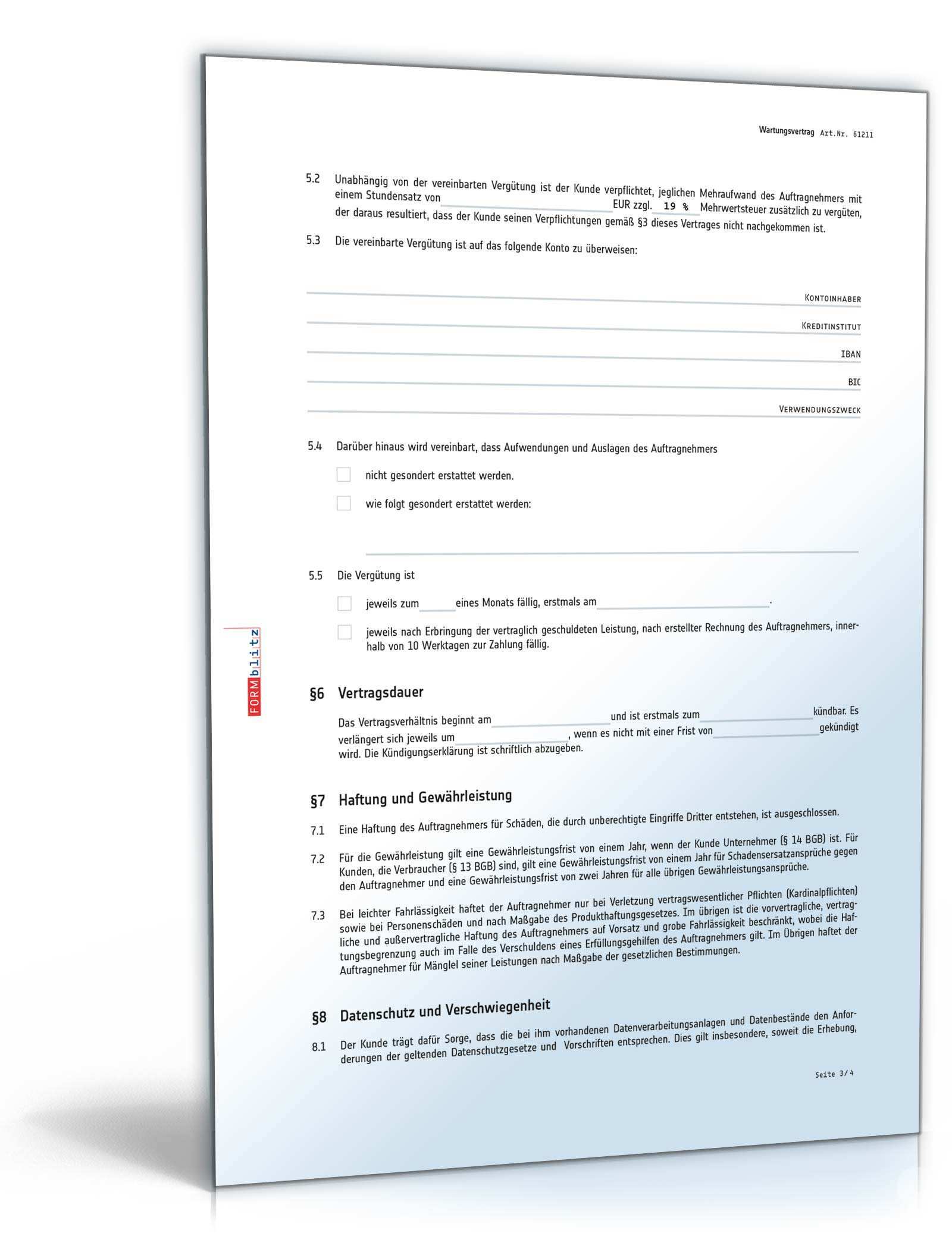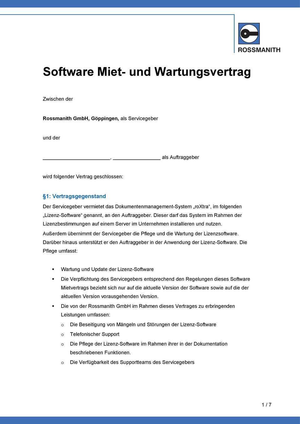 Software wartungsvertrag muster. Sofern der vertrag nicht 1 monat vor ablauf von einem der beiden parteien schriftlich gekündigt wird verlängert er sich automatisch um ein weiteres jahr. Der kontrakt sollte angeben dass wenn eine via vertrag verbundene bestimmung als ungültig ungültig oder undurchsetzbar erachtet wird diese los vom. Mit diesem muster wartungsvertrag für software haben sie die sicherheit alle wesentlichen punkte klar zu regeln. Bewerber brauchen sich keine zeit zu nehmen um zu recherchieren wie jene gute lebensläufe schreiben oder aber formatieren können.