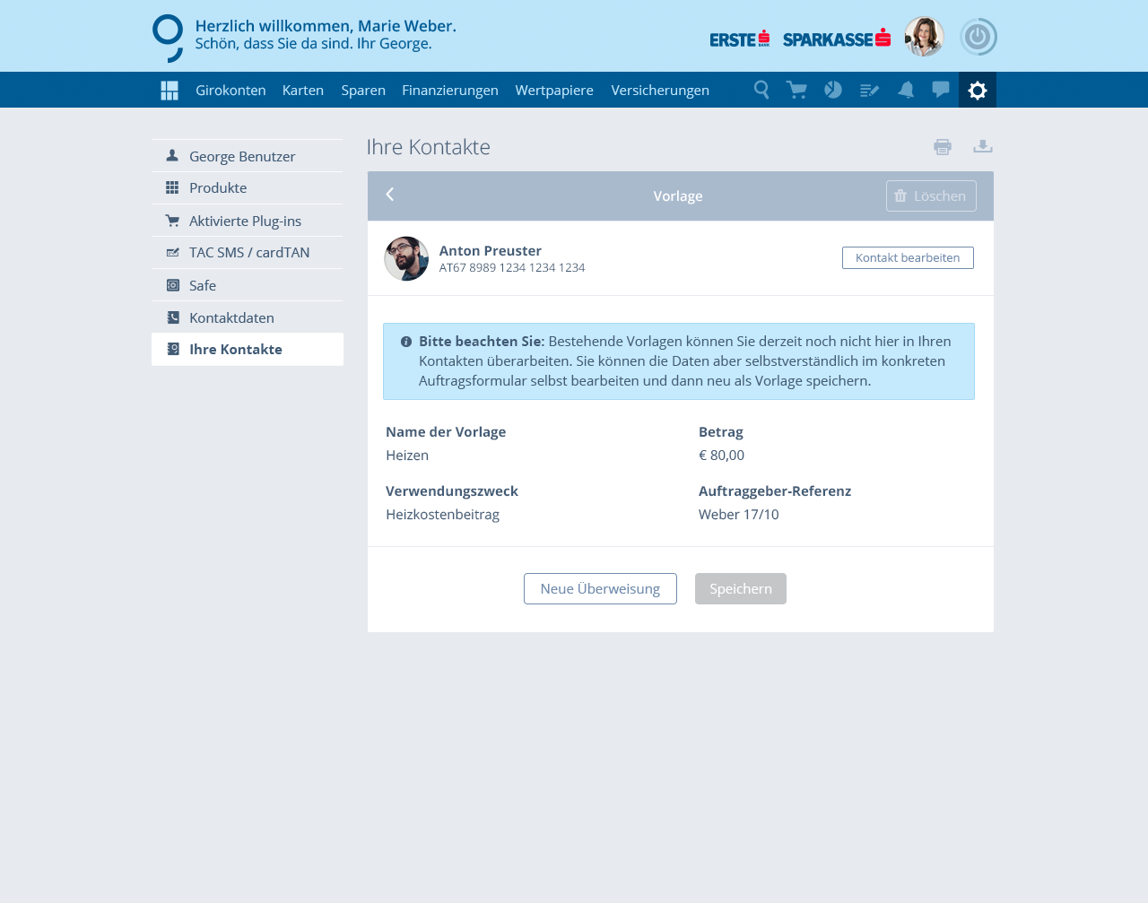 Willst du die sparkassen app nutzen gehst du zur einrichtung wie folgt vor. Zum löschen einer vorlage klicken sie auf das mülleimer symbol und zum überweisen auf das euro zeichen. Im idealfall sollte es mindestens acht zeichen mit einer zahl. Geben sie einfach den namen die iban und den bic des empfängers ein und bestätigen sie mit dem button vorlage speichern.