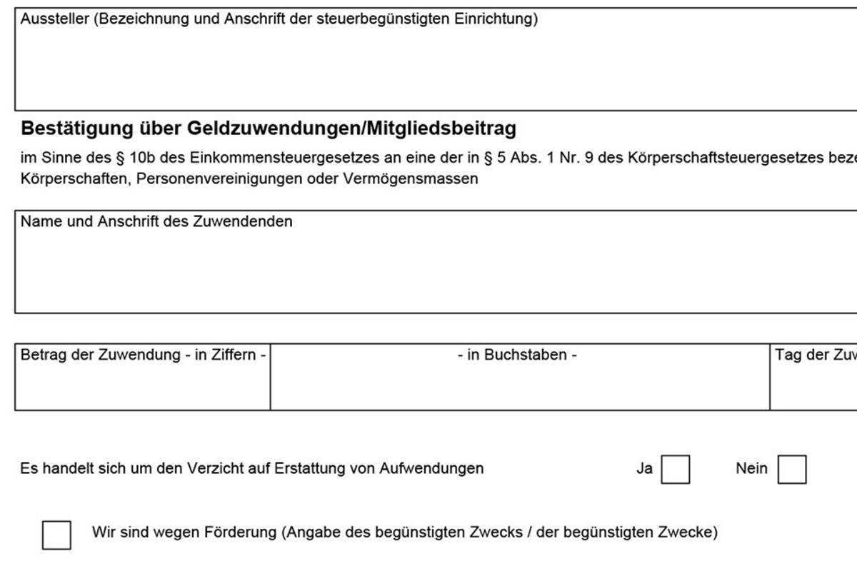 Dazu hat die finanzverwaltung je nach spendenempfänger und art der zuwendung 18 unterschiedliche muster geschaffen bmf.