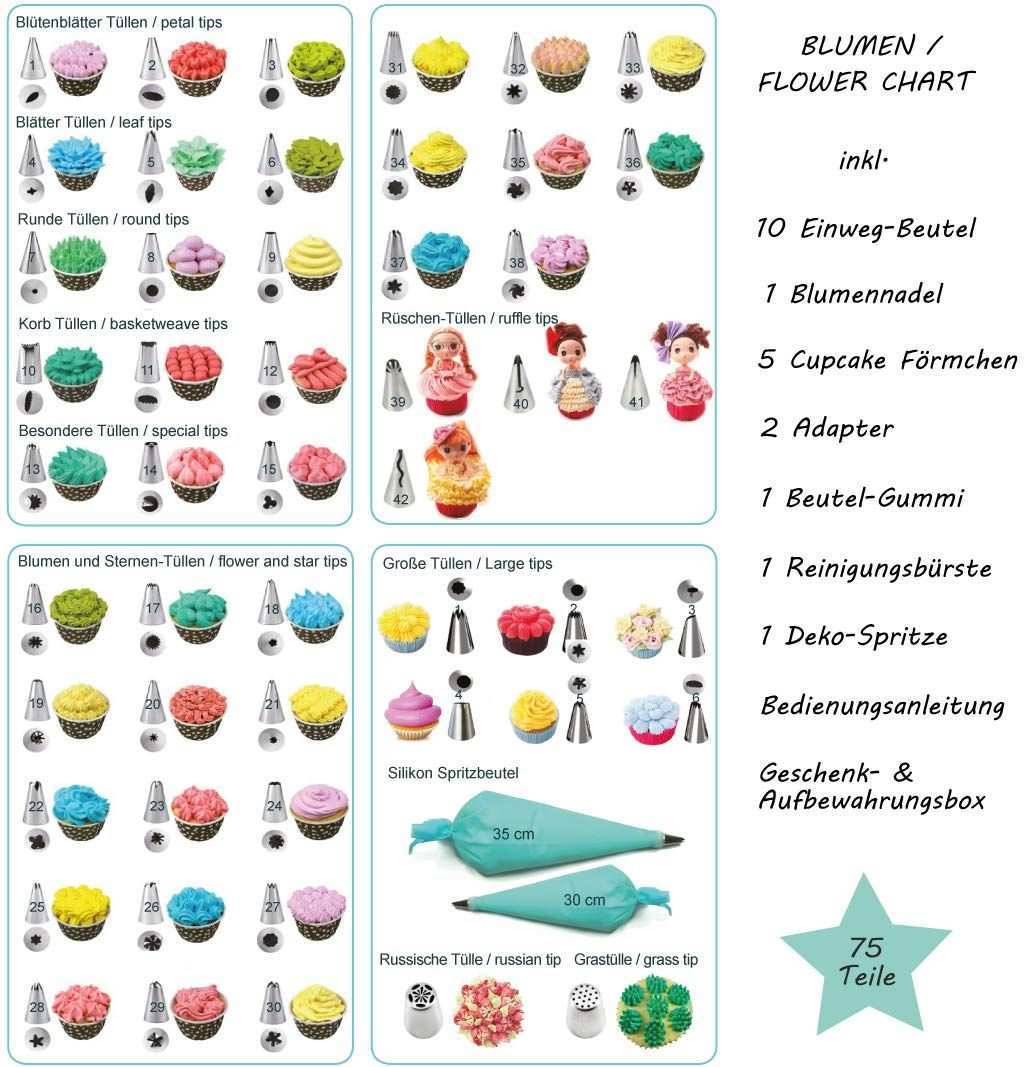 Sowohl stern als auch lochtüllen sind nicht nur für festere sondern auch für weichere cremes geeignet. Spritzbeutel set sie wollen ihren kuchen oder cupcake verzieren. Mit einem spritzbeutel lassen sich desserts wie kuchen oder cupcakes mit sahne oder creme optimal verzieren indem sie beispielsweise präzise muster formen und auch süße botschaften schreiben ein spritzbeutel set mit unterschiedlichen tüllen ermöglicht eine vielseitige gestaltung und bietet ihnen viel raum für das ausleben ihrer kreativität. Mit den tüllen lassen sich zudem nicht nur kleine details spritzen die herstellung von ganzen ketten die die torte umranden ist auch möglich.