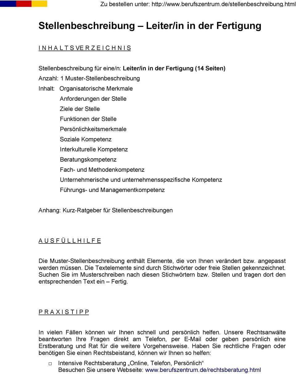 Stellenbeschreibung Muster Pdf
