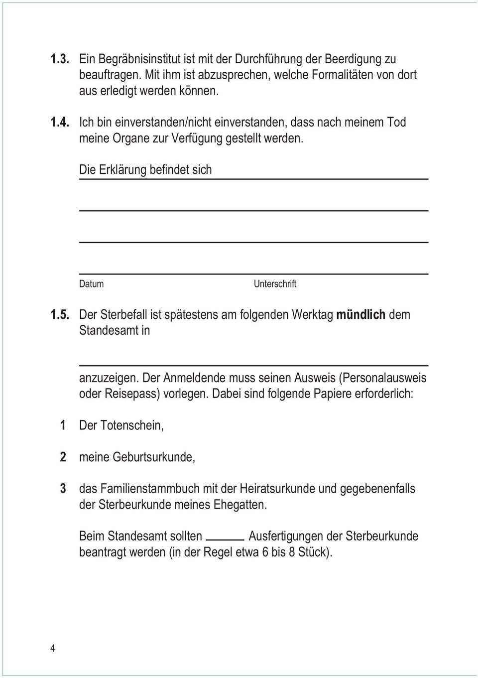 Sterbeurkunde muster pdf. Sterbeurkunde anna xxxx 01 01 1891 ort za zaplacení poplatků sdělte mi prosím čislo a banku účtu emailem. Die sterbeurkunde ist ein wichtiges dokument bei jedem todesfall denn ohne diese urkunde darf der bestatter keine beerdigung durchführen. Für die ausstellung einer urkunde ist eine gebühr von 10 00 fällig. Sie erhalten nach kauf und bezahlung eine hübsch formatierte und korrektur gelesene worddatei mit der übersetzten urkunde zum download in die sie nur noch personenbezogene daten ihre beglaubigungsformel und ggf.