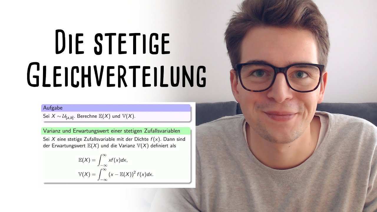 Ein einleuchtendes beispiel für eine stetig gleichverteilte zufallsvariable ist die wartezeit auf einen bus. Sie hat auf einem intervall displaystyle eine konstante wahrscheinlichkeitsdichte. Wenn ich weiß dass der bus alle 10 minuten abfährt aber den fahrplan nicht im kopf habe sondern einfach an die haltestelle laufe dann folgt meine wartezeit an der haltestelle einer stetigen gleichverteilung zwischen a 0 und b 10 minuten. Dies ist gleichbedeutend damit dass alle teilintervalle gleicher länge dieselbe wahrscheinlichkeit besitzen.