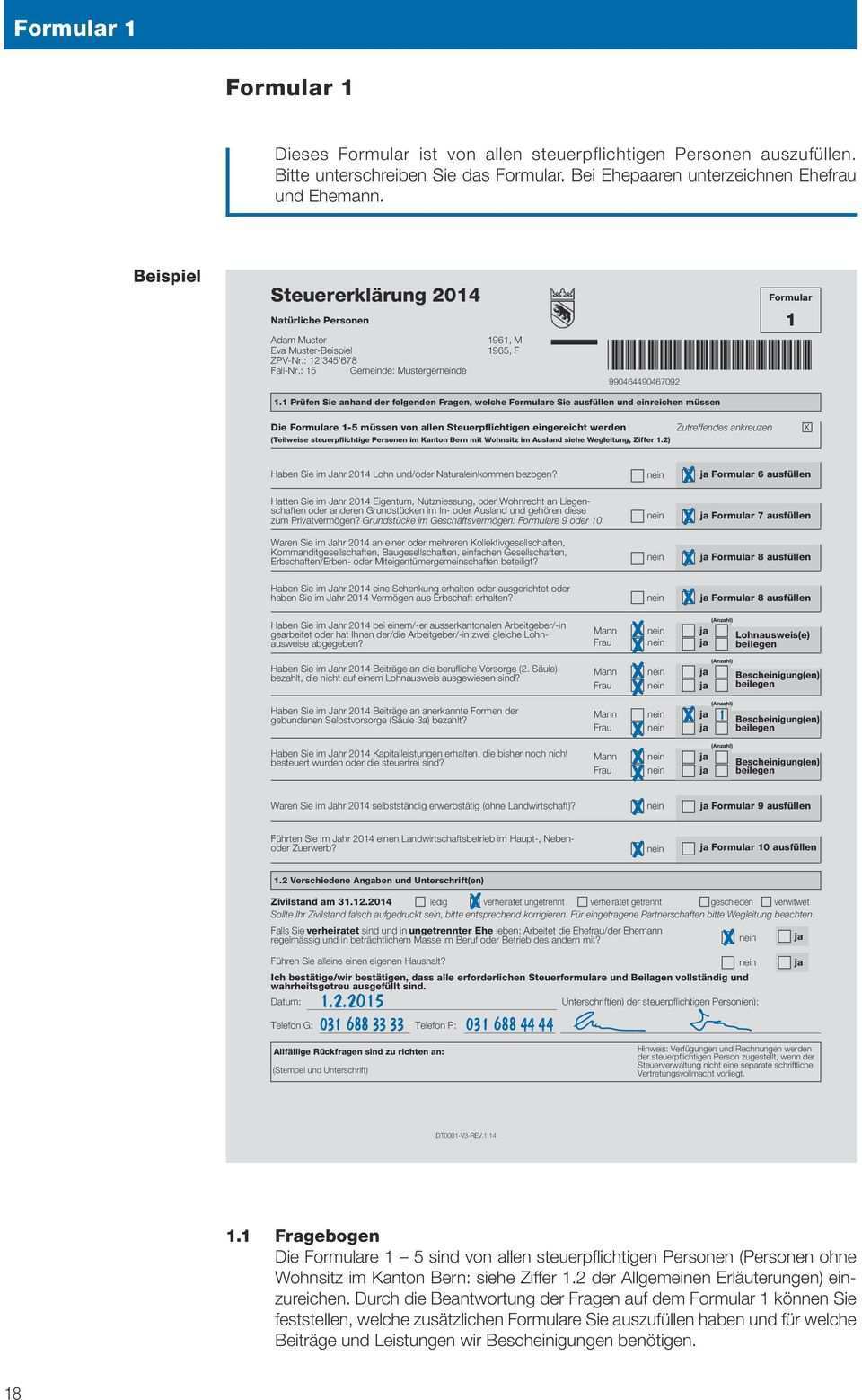 Steuererklaerung 2014 beispiel. Silvia msuter angaben zum sorgerecht unterhalt 24 gemeinsames kind beider ehepartner ja ehemann einzelperson p1. Auch alle die 2014 eine lohnersatzleistung wie zum beispiel elterngeld bekommen haben sind zur abgabe einer einkommensteuererklärung grundsätzlich verpflichtet. Die andere frage die in diesem fall dargestellt wird ist die konkursfrage der nicht eingereichten und verspätet eingereichten rücksendungen die wir hier hier und hier bereits mehrfach geschrieben haben. Zu diesem mischposten zählen zum beispiel die aufwendungen für ihre altersvorsorge aber auch krankenversicherungsbeiträge und kinderbetreuungskosten.