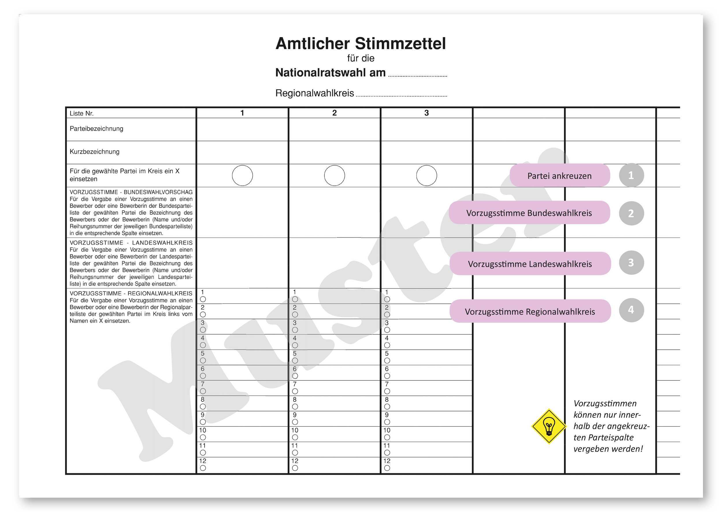 Stimmzettel listenwahl als word dokument textausschnitt. Vergibt der die wahlberechtigte mehr als eine stimmen ist der stimmzettel ungültig.
