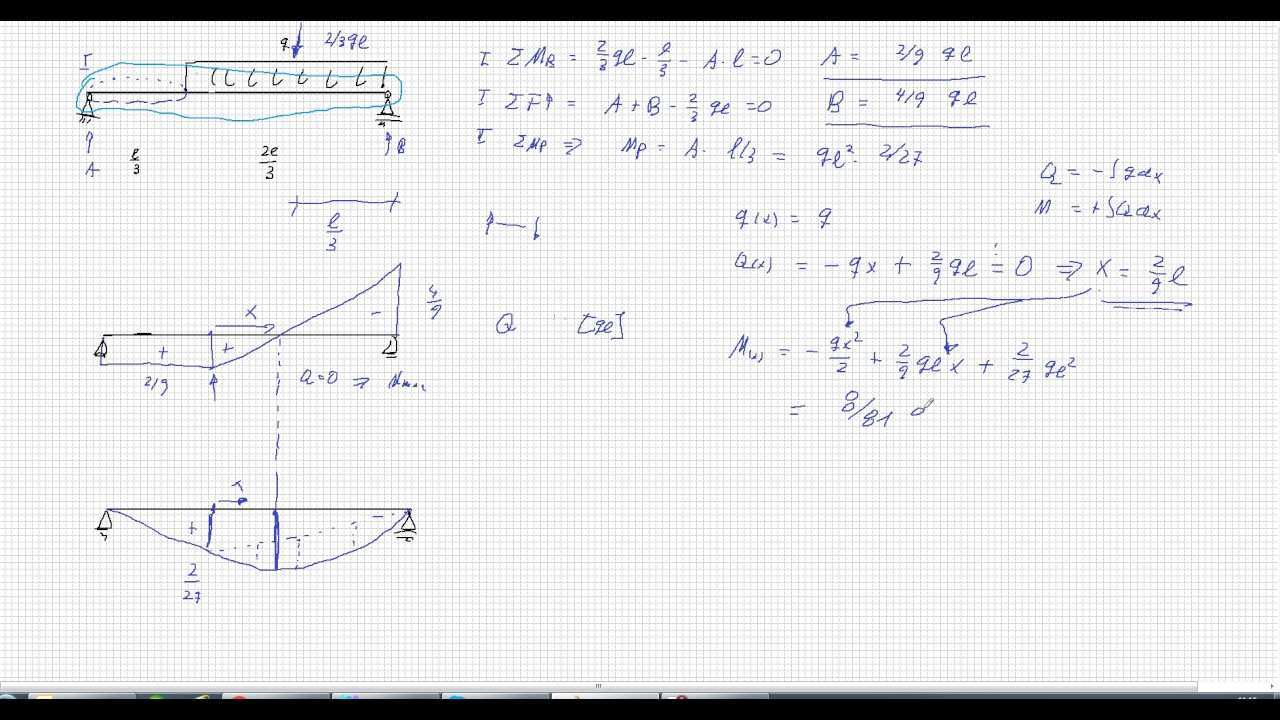Die lagerkraft by wirkt über den hebel der länge l doch über welchen hebel wirkt die resultierende fr. Die zusammenfassung der streckenlast zu einer größe wird immer im schwerpunkt angesetzt erfolgt demnach zu q 0 cdot x l. 1 kg 9 81 n 0 00981 kn. Für die querkraft wird die streckenlast bis zum schnitt berücksichtigt.