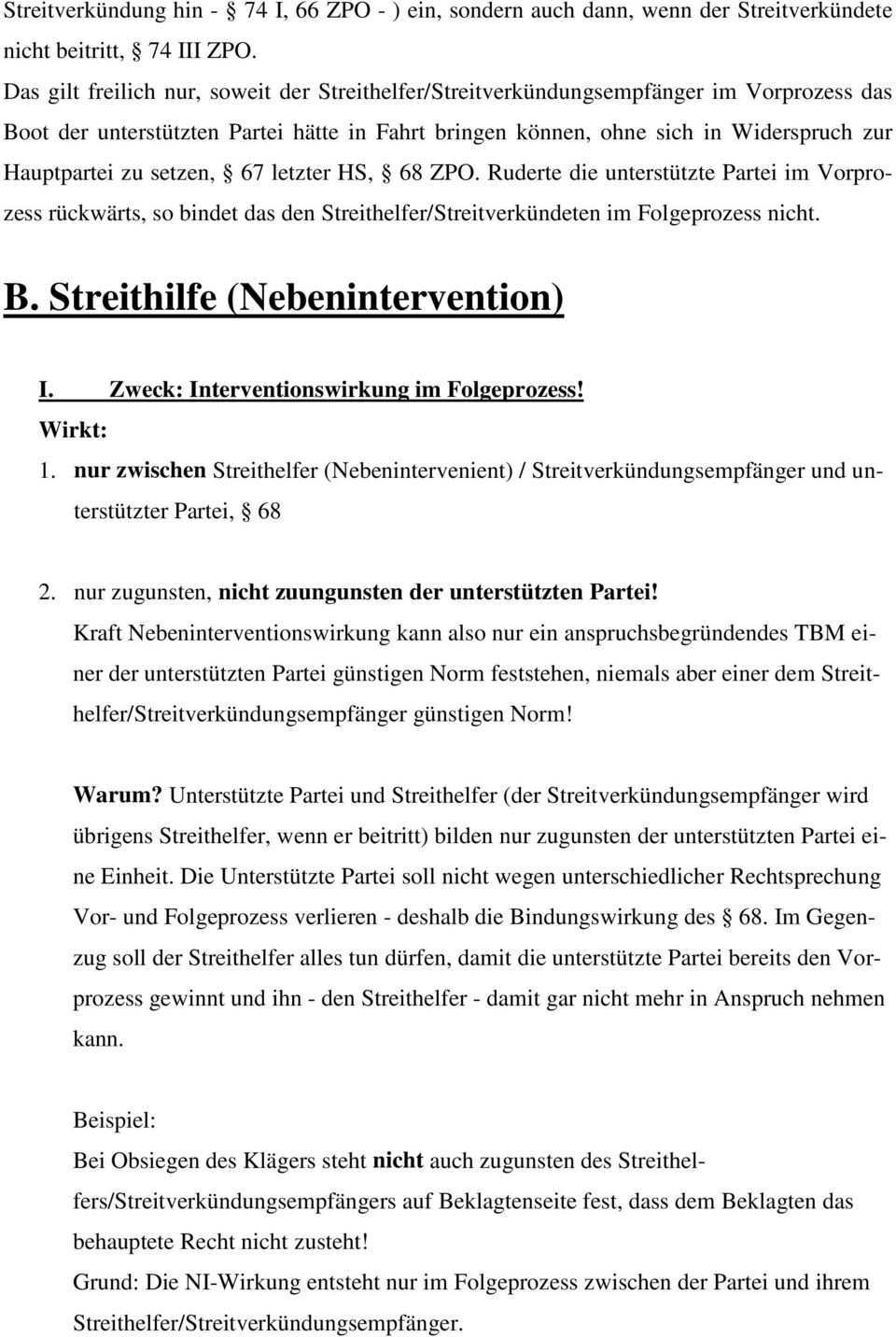 Streitbeitritt nach streitverkündung im baurecht das müssen sie als anwalt wissen. Zpo ein dritter von einer partei zwangsweise in den rechtsstreit hineingezogen zweck ist es die interventionswirkung des 68 zpo herbeizuführen. Einen zu befürchtenden rückgriff plausibel darstellen kann. Die streitverkündung bezweckt vielmehr neben materiellrechtlichen folgen dazu unten vi in erster linie die herbeiführung der interventionswirkung gem.
