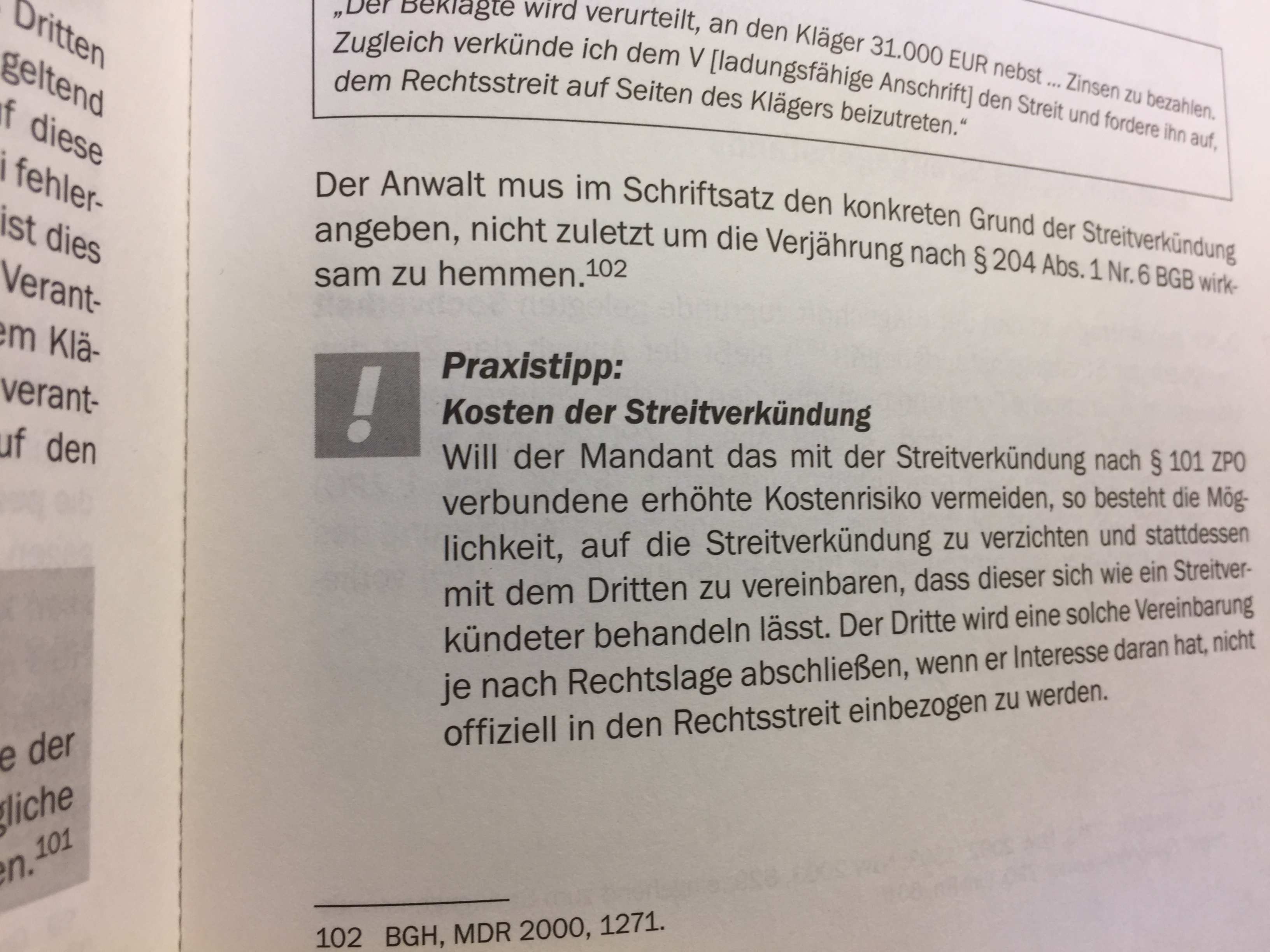 Erläuterungen 71 zwischenstreit über nebenintervention 72 zulässigkeit der streitverkündung 73 form der streitverkündung 74 wirkung der streitverkündung 75 gläubigerstreit 76 urheberbenennung bei besitz. Der beitritt kann auf der seite des streitverkünders oder aber der gegenseite erfolgen. Im anwaltsprozess erfordert der beitritt aber. 48 der streitverkündungsadressat muss nach zustellung einer streitverkündung prüfen ob er dem rechtsstreit beitritt.