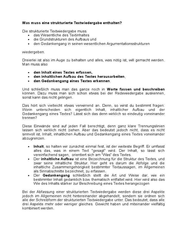 Beispiel für eine strukturierte textwiedergabe texterörterung. Beispiel für eine strukturierte textwiedergabe texterörterung. Eine textwiedergabe gliedert sich in einleitung hauptteil und schluss. 4teachers lehrproben unterrichtsentwürfe und unterrichtsmaterial.