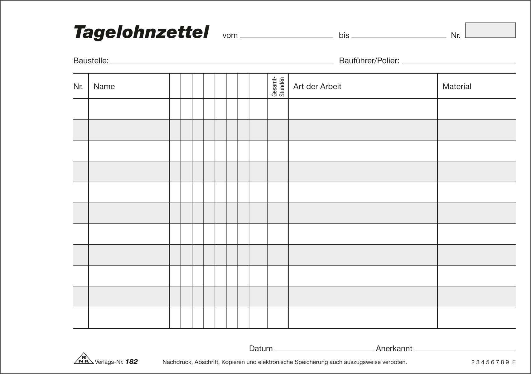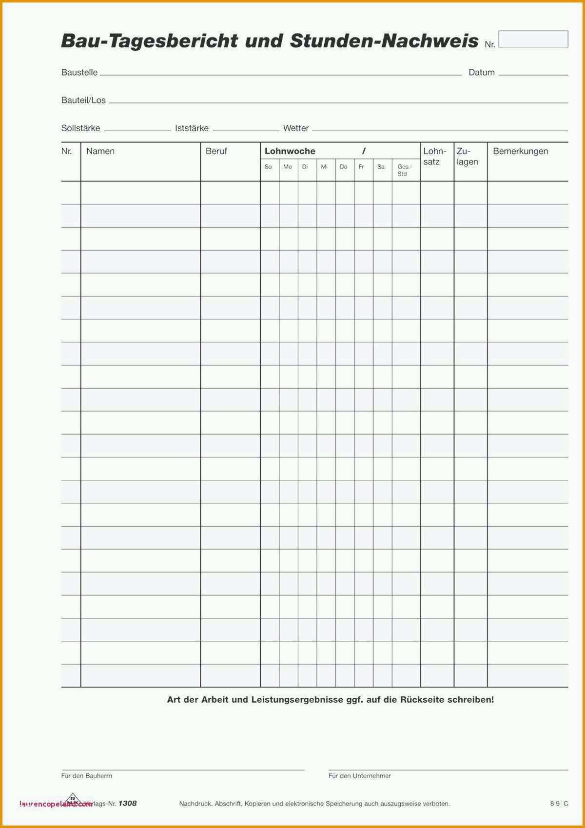 Stundenzettel Baustelle Vorlage