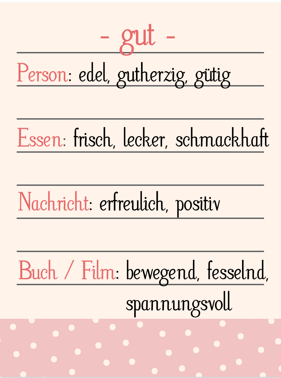 Beispiel hauptform exempel inbegriff inkarnation muster an musterbeispiel musterfall paradebeispiel sehr gutes beispiel für vorzeigebeispiel ausbund an von geh ausgeburt einer sache an etwas geh abwertend. 1 exempel musterbeispiel 2 art zu denken denke siehe vollständige liste der synonyme unten. Hier findest du wörter mit einer ähnlichen bedeutung wie beispiel mit hilfe eines strukturalen wort analyse algorithmus durchsucht unsere suchfunktion das synonym lexikon nach der wortfamilie oder wörtern im umfeld von beispiel wörter mit einem ähnlichen wortstamm wie beispiel werden gruppiert angezeigt wörter mit der größten trefferrelevanz werden weiter oben gelistet. Synonyme für muster 644 gefundene synonyme 37 verschiedene bedeutungen für muster ähnliches anderes wort für muster.