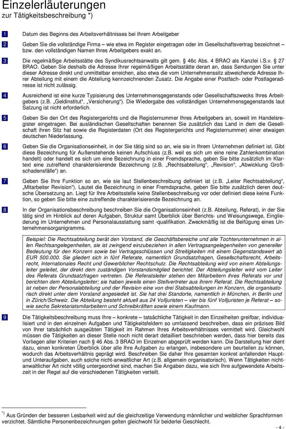 Taetigkeitsbeschreibung syndikusanwalt muster. Hat der syndikusanwalt auch bei seiner tätigkeit für seinen arbeitgeber die anwaltlichen grundpflichten s. Für die zulassung als syndikusrechtsanwältin syndikusrechtsanwalt. 1 name vorname arbeitnehmer in 2 beginn des arbeitsver hältnisses 1. Arbeitnehmer in 2 beginn des arbeitsver.