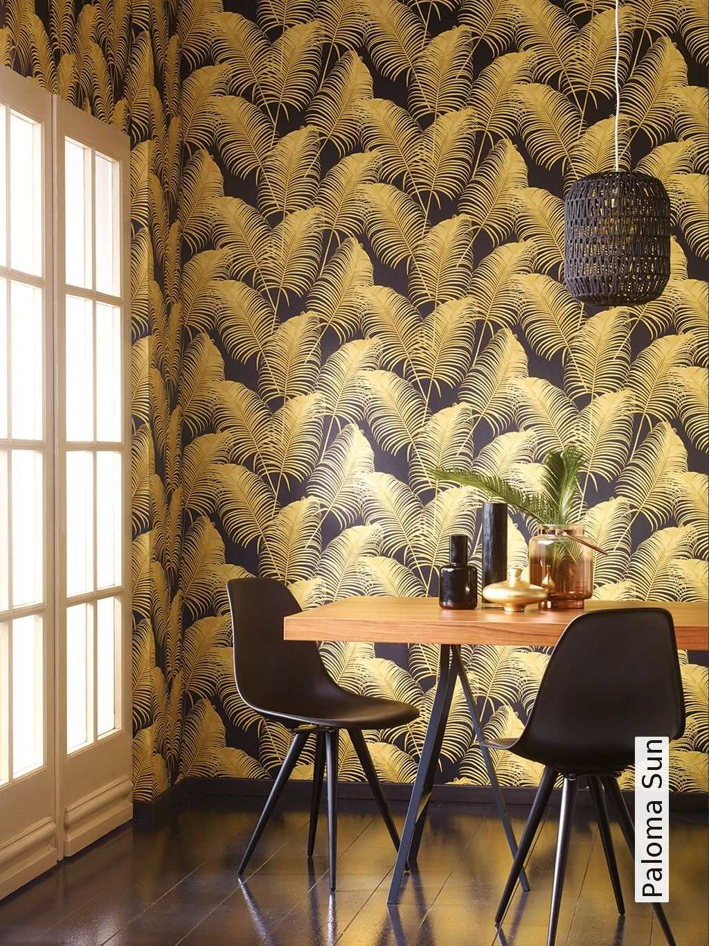 Mit gold als grundfarbe der tapete erscheint das muster je nach expliziter musterfarbe ausdrucksvoller oder aber zarter.