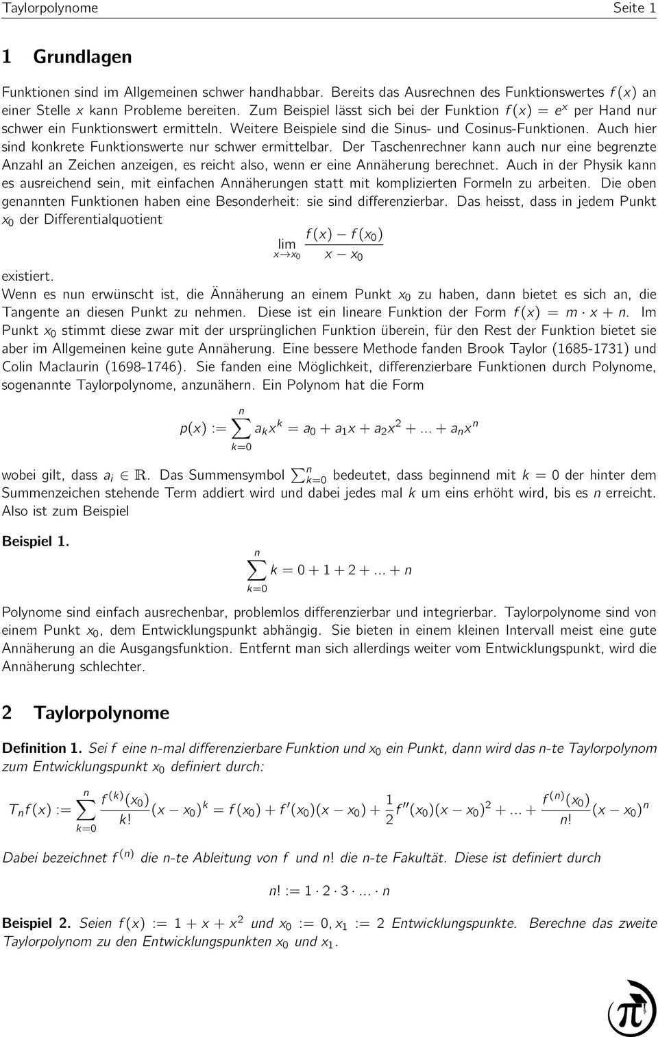 Dann ist f k x ex f k x 0 1 fur k 0 1 2. Für das entwicklungszentrum 0 geht die taylorsche reihe in die maclaurinsche reihe über. Meine frage ist nun wie diese taylorreihe aussehen soll. Die taylorreihe wird weniger brauchbar je weiter die punkte und auseinander liegen.