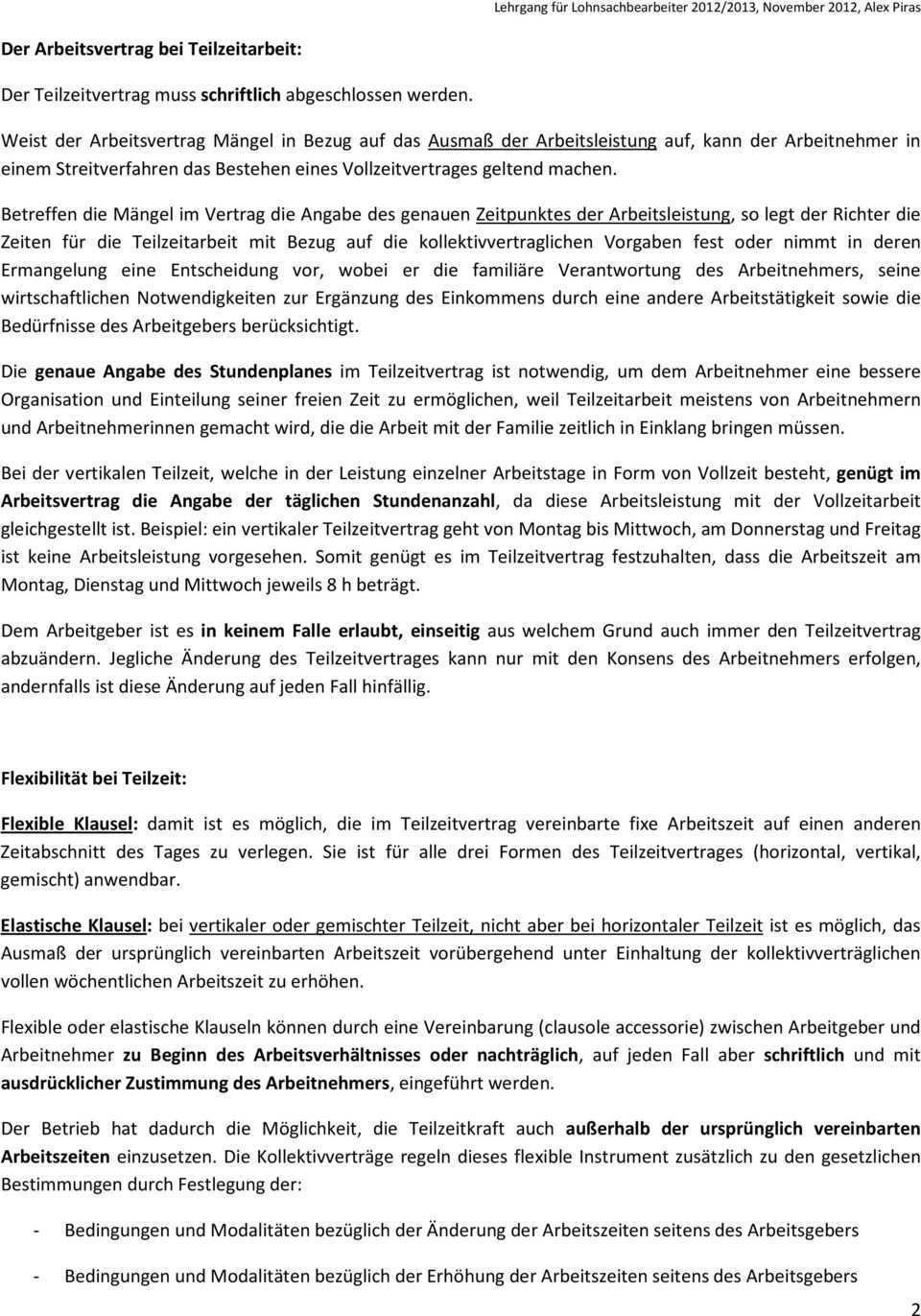 Teilzeit arbeitsvertrag flexible arbeitszeit muster überarbeitet am.