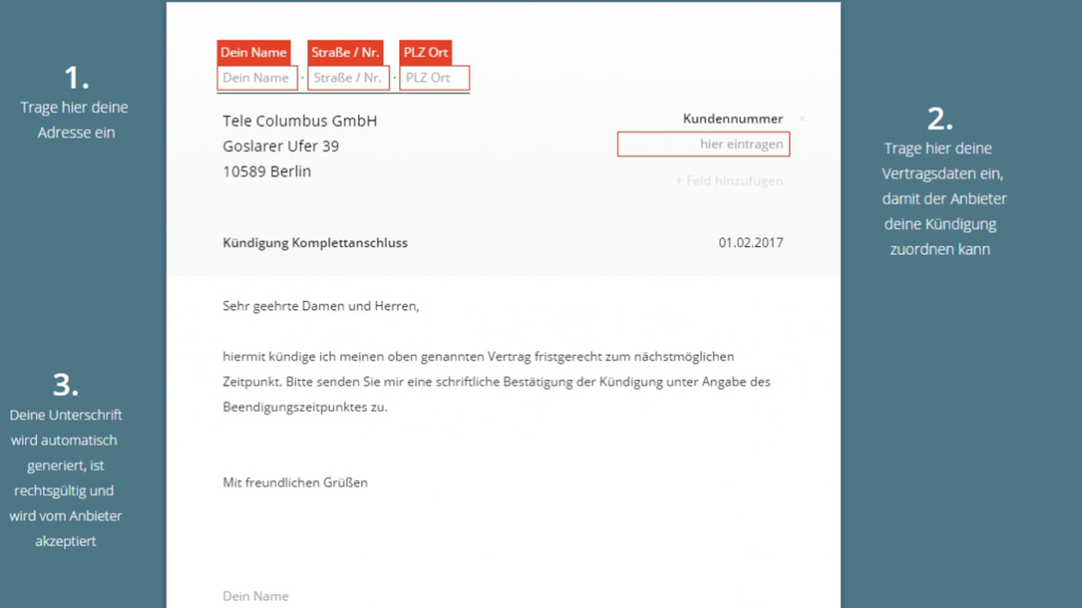 Schnell und einfach in nur wenigen minuten erledigt. Vorlage zur kündigung bei tele columbus. Kündigungsschreiben tele columbus muster. Jetzt tele columbus vertrag online kündigen.