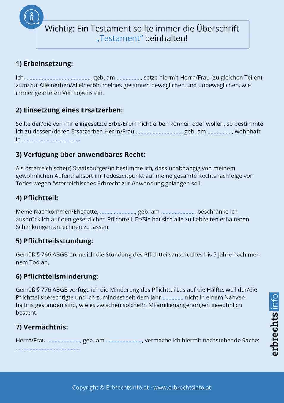 Testament unverheirateten partnern muster posted on august 11 2020 by dinkoslav darüber hinaus kann es bei einigen rentensystemen zu komplikationen kommen die im todesfall an unverheiratete partner ausgezahlt werden insbesondere wenn es um betriebliche systeme geht sofern ihre lebensgefährtin nicht in gütergemeinschaft verheiratet ist sehr selten heut zu tage und auch kein gemeinschaftliches testament oder ehevertrag oä vorliegt kann sie über ihr vermögen verfügen wie sie will. Testament wenn es keine verwandten mehr gibt. Ein nicht verheirateter partner kann also jederzeit in einem privaten und handschriftlich verfassten testament seinen lebenspartner oder seine lebenspartnerin zum erben einsetzen und mit dieser verfügung die gesetzliche erbfolge ausschließen. So können sie ihr testament richtig verfassen und schreiben.