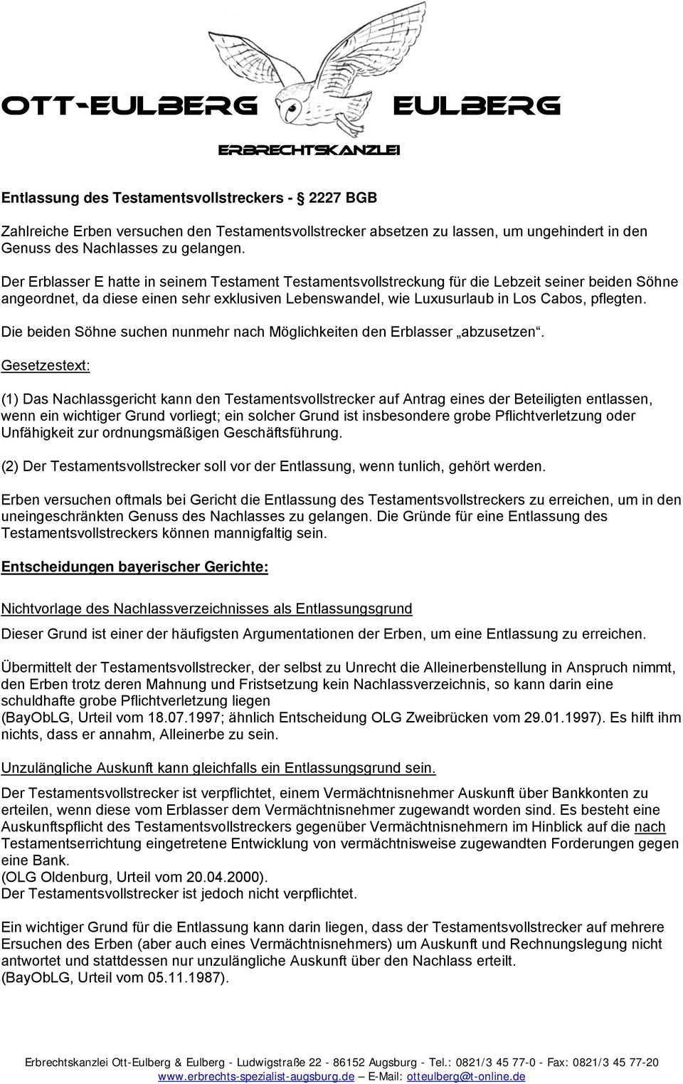 Informationsschreiben mit jährlicher rechnungslegung durch den testamentsvollstrecker an erben. Da 2218 bgb die regelung der vorschusspflicht im auftragsverhältnis 669 bgb nicht erwähnt hat der testamentsvollstrecker grundsätzlich keinen anspruch auf eine vorschussleistung. Testamentsvollstreckung ist also ein amt welches sie ihrem ausgewählten testamentsvollstrecker übertragen. 13 testamentsvollstreckung i muster.