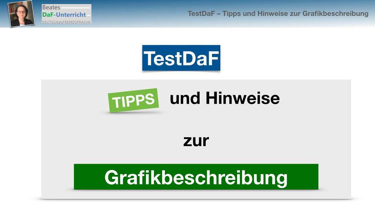 Stellen sie sich vor. Genaues thema der grafik benennen. Dieser teil vom testdaf kann unterschiedlich sein und in den vorbereitungsbüchern sind leider noch nicht alle varianten der aufgabe präsentiert und deswegen ist es wichtig dass sie die modellsätze auf der homepage vom testdaf institut bearbeiten und hinweise und tipps beachten die da formuliert sind. Dann ist der testdaf die richtige prüfung für sie.