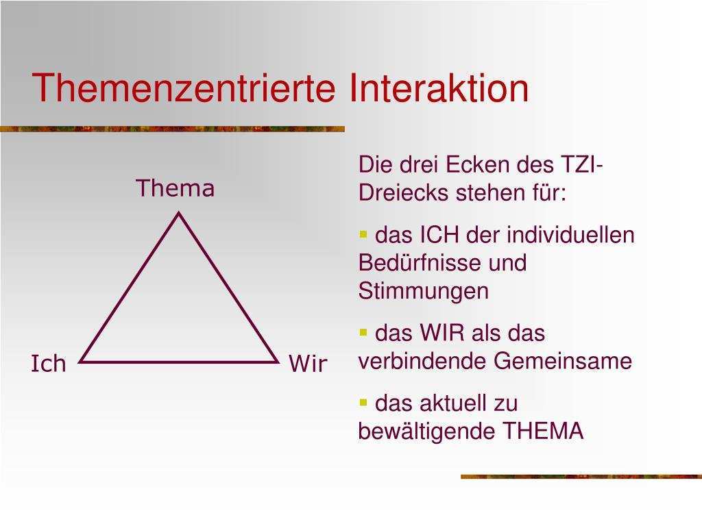 Das ich die persönlichkeit. Cohn in den usa entwickelt. Themenzentrierte interaktion tzi thema ich wir. Themenzentrierte interaktion tzi regeln und richtlinien für die gruppeninteraktion von ruth cohn.