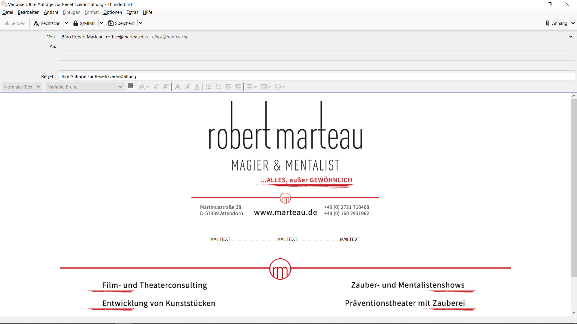 Erstellen einer vorlage öffnen sie thunderbird und klicken auf verfassen. Doppel klicken sie auf die nachricht vorlage die sie verwenden möchten. Als vorlage können sie die briefpapier dateien von ms oe nutzen oder eigene erstellen.