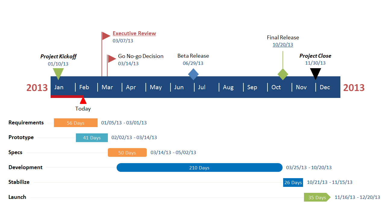 Timeline excel vorlage. Simply input activities into a table below and watch as the timeline above populates in real time. Track your project schedule with this automatic timeline maker in excel. From the timeline worksheet in excel click in any blank cell. This template was found using the latest version of excel on windows 8.