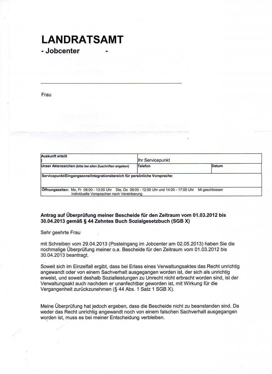 Der überprüfungsantrag ist des weiteren an das jobcenter zu richten welches den verwaltungsakt auf den sie sich beziehen erlassen hat. Bescheid vom datum überprüfungsantrag gemäß 44 sgb x sehr geehrte damen und herren. Entscheidung über den hartz iv widerspruch widerspruchsbescheid. Stellen sie einen überprüfungsantrag.