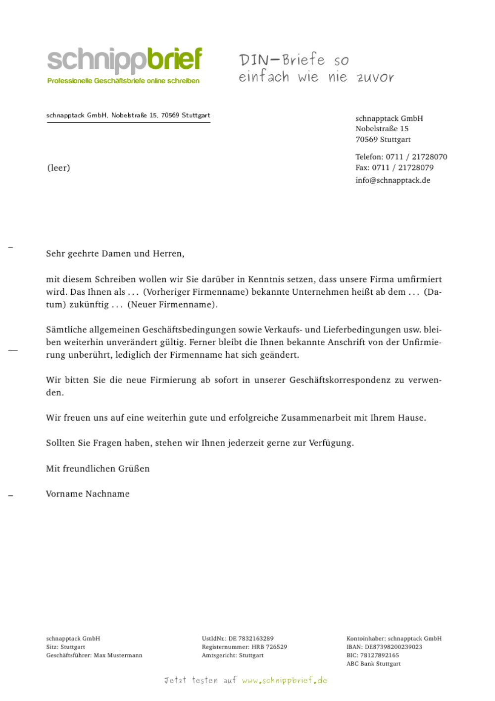 Verfassen sie schreiben rechtlich korrekt mit unseren briefvorlagen und formulierungshilfen. Umfirmierung im lebenslauf darstellen. Wählen sie diese eine registerkarte.