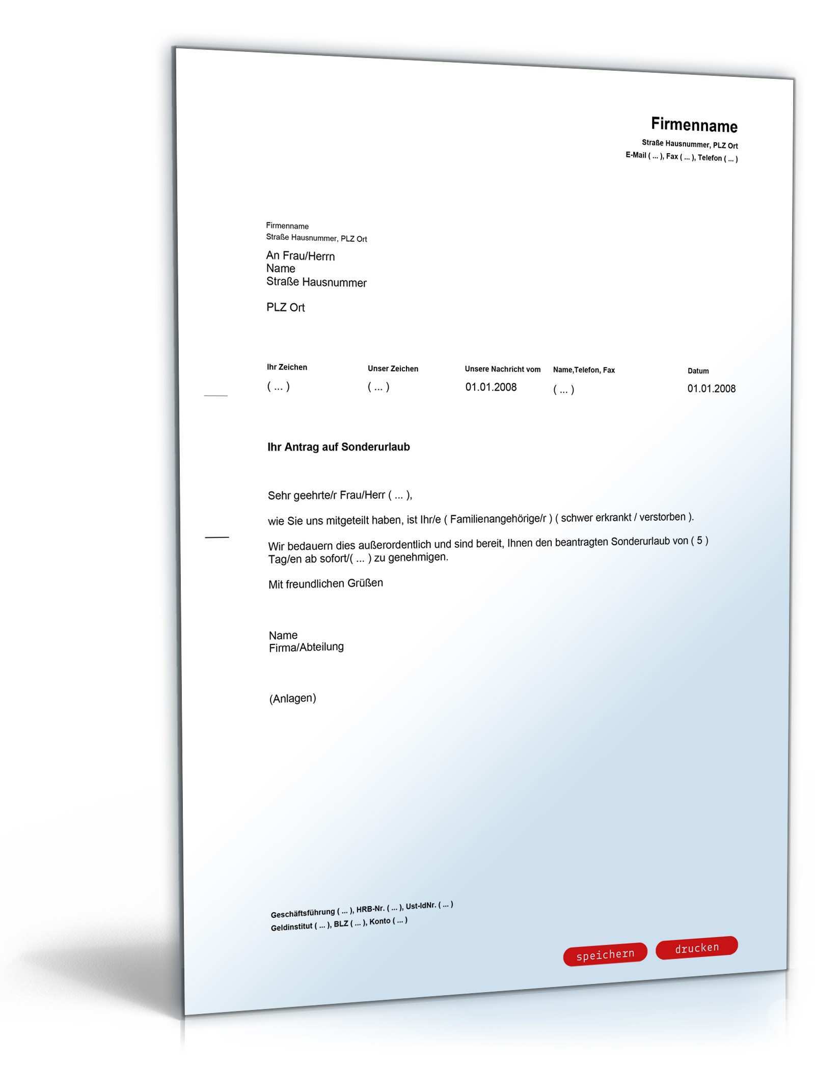 Unbezahlter Urlaub Antrag Vorlage