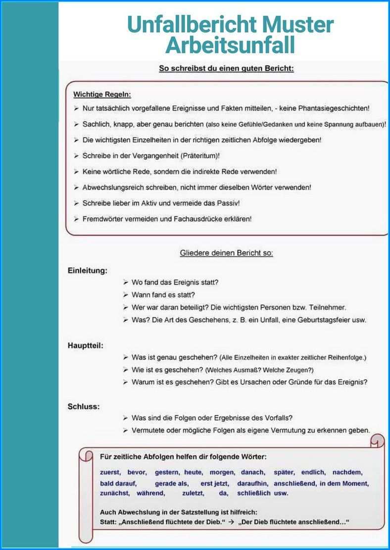 Das schreiben eines berichtes meistens eines unfallberichtes ist ein wichtiger bestandteil des deutsch unterrichts.