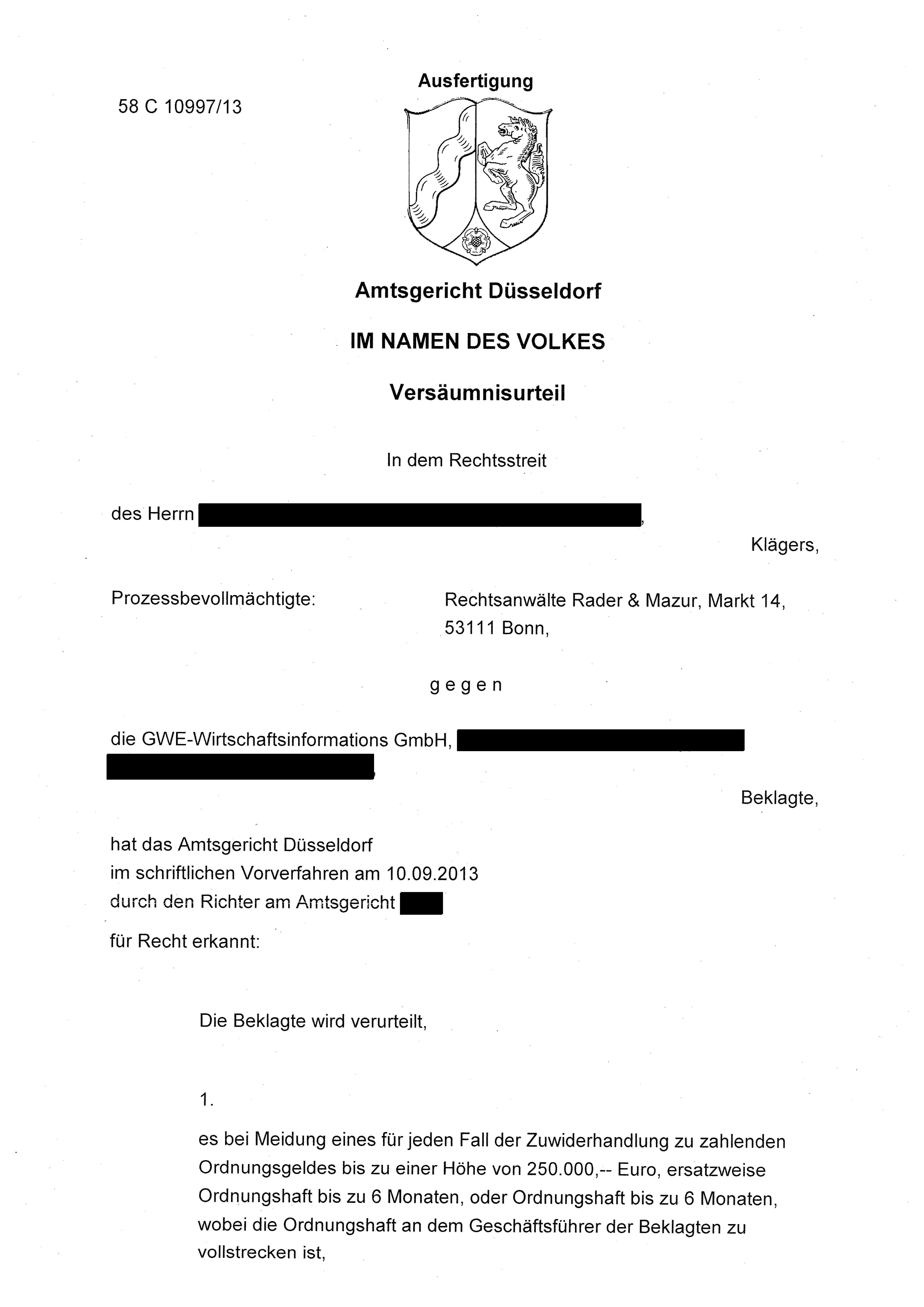 E mail werbung darf nur unter strengen auflagen erfolgen. Unterlassungsanspruch unterlassungsklage das rechtsschutzinteresse für die gerichtliche geltendmachung eines unterlassungsanspruchs entfällt trotz abgabe einer strafbewehrten unterlassungserklärung des störers dann nicht wenn dieser gegen die unterlassungserklärung verstoßen hat und nicht bereit ist die dadurch verwirkte vertragsstrafe zu leisten. Es wurde klargestellt dass der spam empfänger mit der hier eingereichten beschränkten unterlassungserklärung nicht zufrieden sein muss. Der kläger ist der auffassung dass auch die streitgegenständliche e mail werbung vom wortlaut der unterlassungserklärung vom 19 03 2012 werbeschreiben umfasst sei.