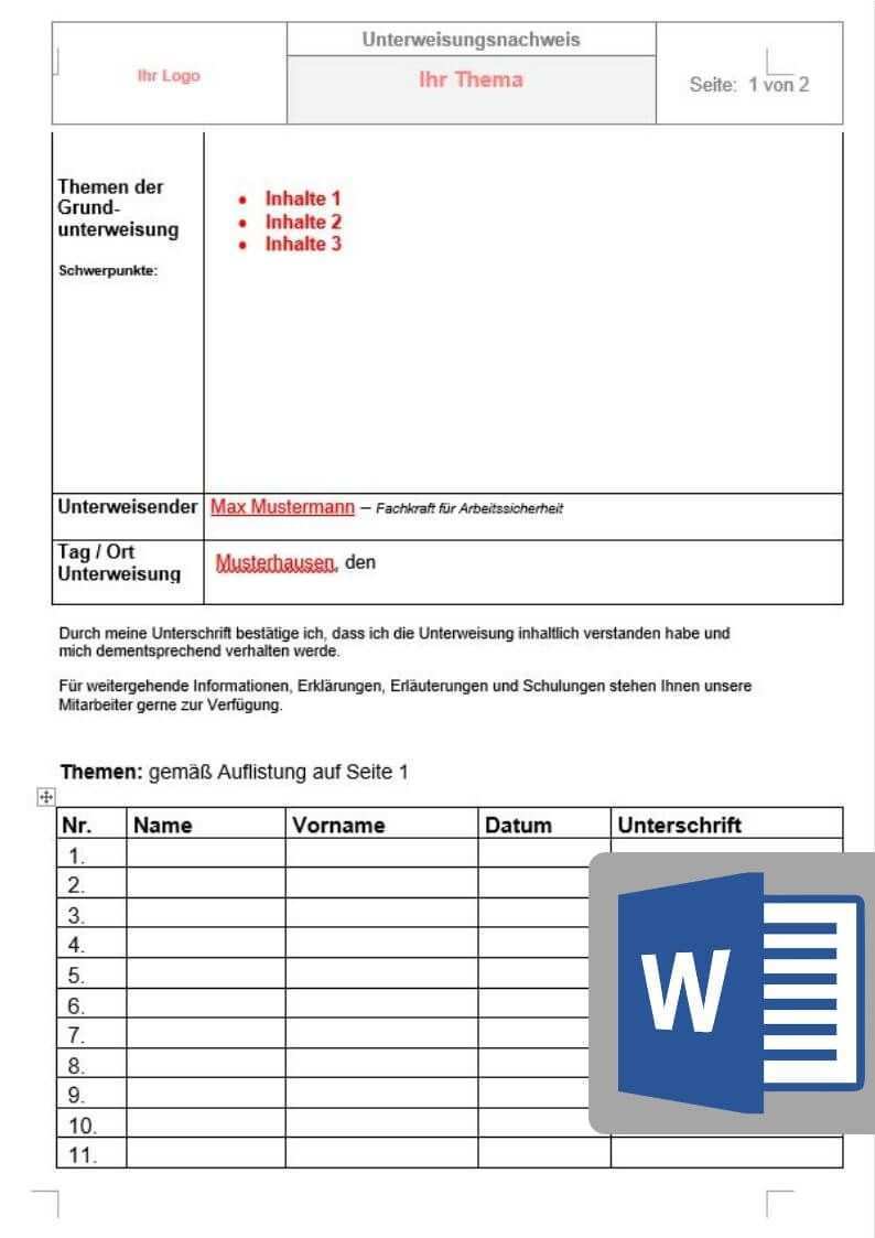 Zeit sparen vorlagen für betriebanweisungen und unterweisungsprotokolle. Unterweisung arbeitssicherheit vorlage wir haben 20 bilder über unterweisung arbeitssicherheit vorlage einschließlich bilder fotos hintergrundbilder und mehr. Alle dokumente sind in word erstellt. Wir haben für sie etliche dokumente zum thema arbeitssicherheit unterweisungsnachweis und betriebsnachweis vorbereitet.